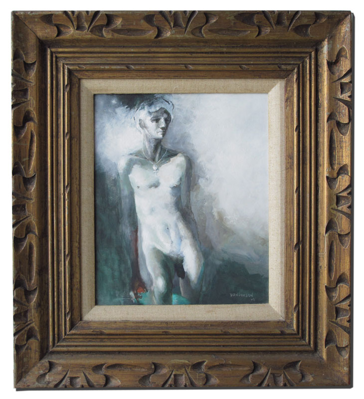 ANDERSON, David, (American, 20th C.): Nude Study of a Young Male, Oil/Masonite, sight size 11 1/2'' x 9 1/2'', signed lower right and dated 1969, carved frame, 20'' x 18''.