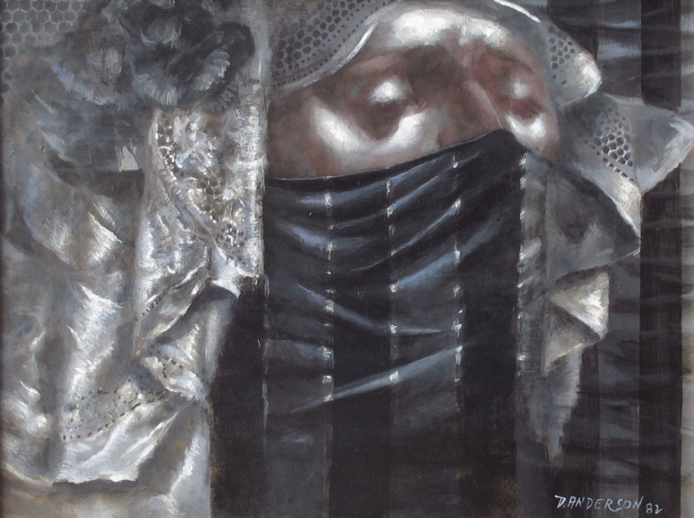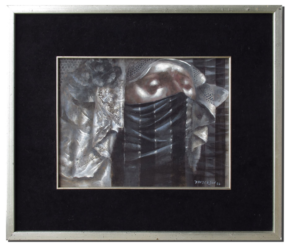 ANDERSON, David, (American, 20th C.): A Veiled Figure, Oil/Masonite, 11 1/2'' x 15 1/2'', signed lower right, dated 1982, custom frame and matting, 21'' x 25''.