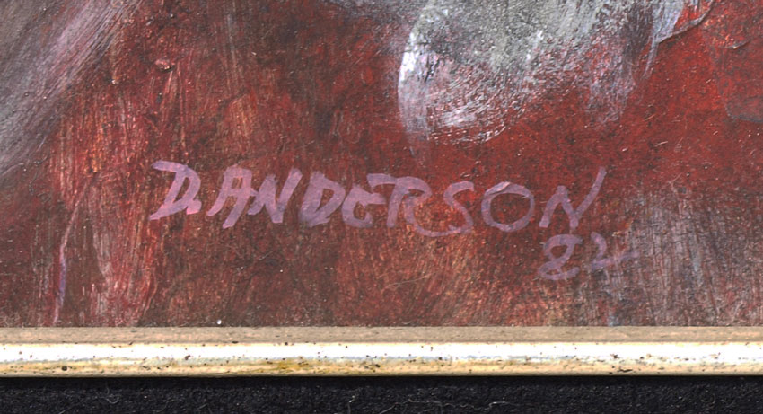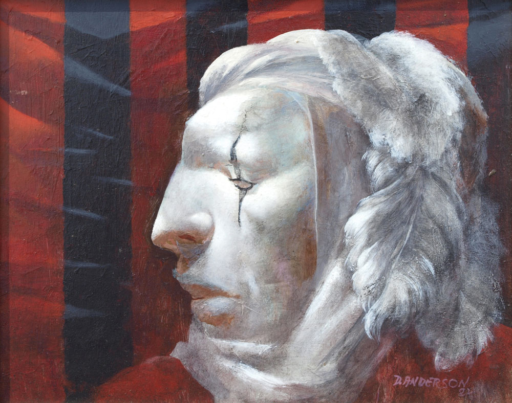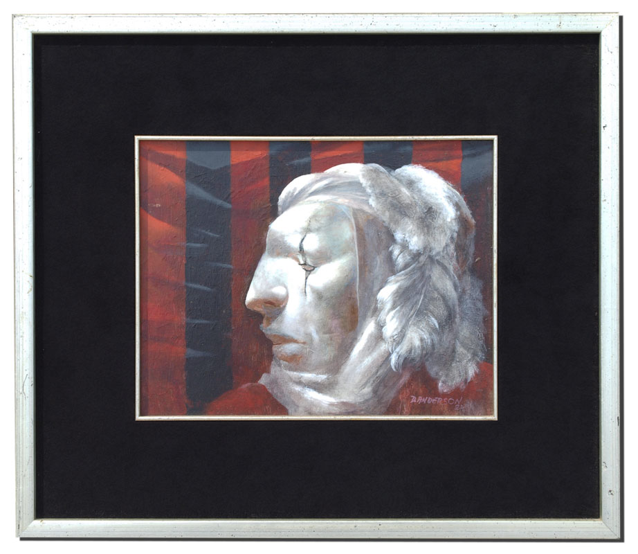 ANDERSON, David, (American, 20th C.): Profile of a Harlequin, Oil/Masonite, 11'' x 14'', signed lower right and dated 1982, custom frame and matting, 20'' x 23''.