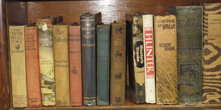 35 PIECE BIG GAME HUNTING & MORE FICTION BOOKS: 35 hunting, big game hunting, African subjects and others. Highlights include several volumes from Zane Grey, Jack London, Robert Rouark, J. A. Hunter and others.