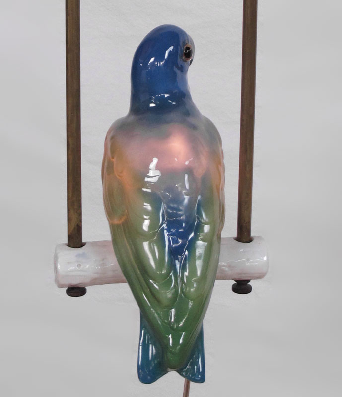COPENHAGEN PORCELAIN FIGURAL PARROT HANGING LAMP: Parrot 9 1/2'' h., overall on wall mount 19'' h. x 6 1/4'' x 8''.