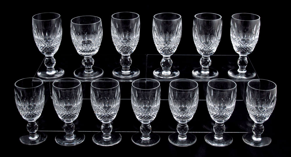 13 WATERFORD CRYSTAL COLLEEN SHERRY GLASSES: In the Colleen patter, marked Waterford. 4 3/8'' h.