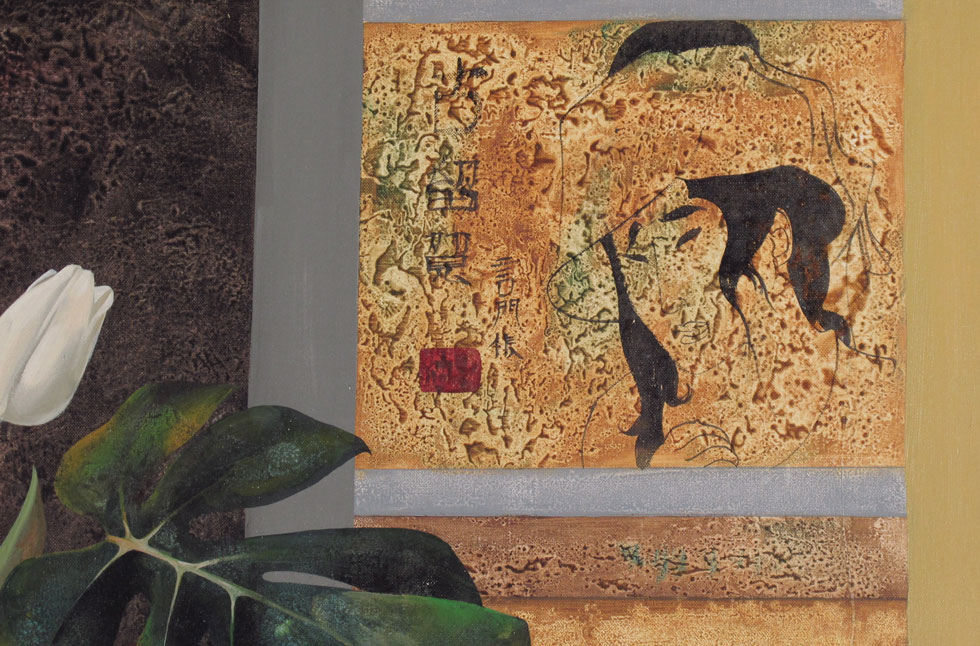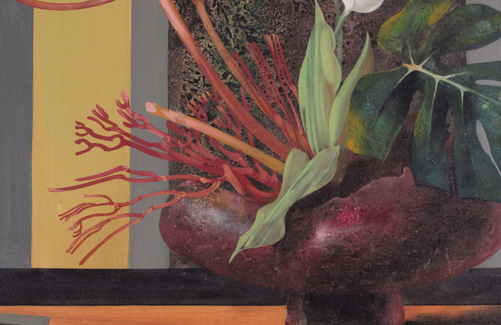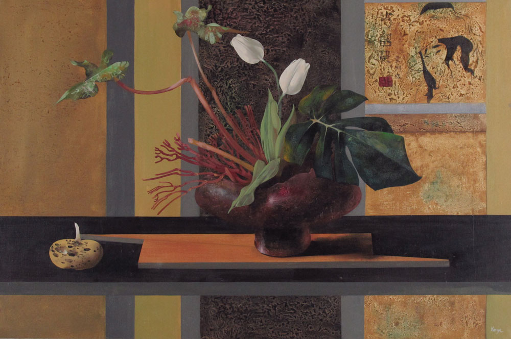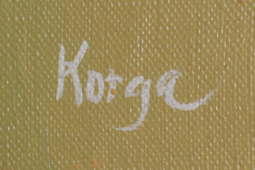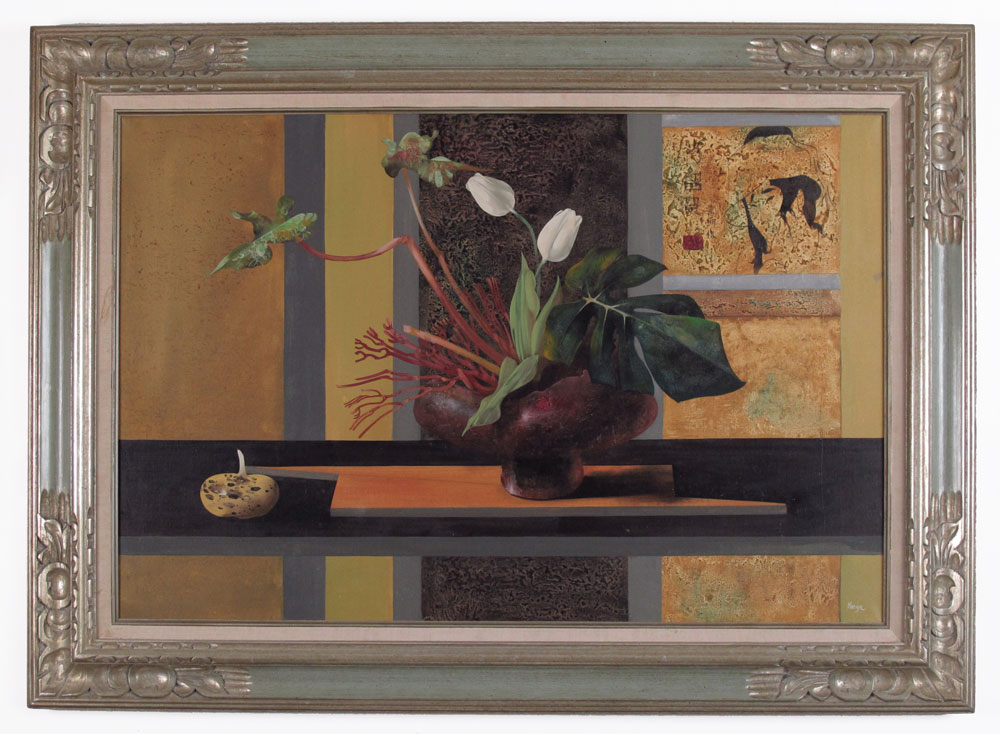 KORGA, Gyorgy, (Hungary, 1935-): Floral Still Life in a Modern Interior, Oil/Canvas, 23 1/4'' x 36'', signed lower right, carved frame, 32'' x 44 1/4''.