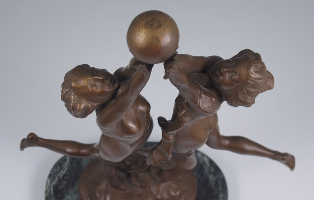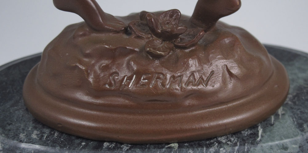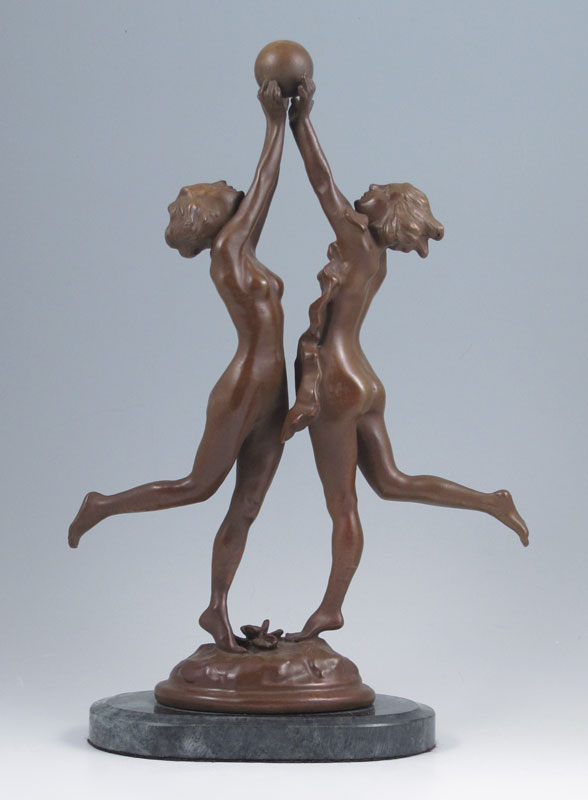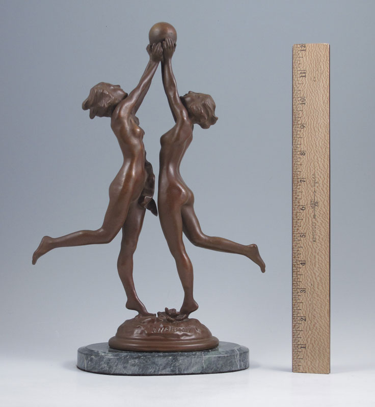 DECO BRONZE NUDE GROUPING SIGNED SHERMAN: 12 1/4'' h., incised signature, affixed to marble plinth, 13'' overall.