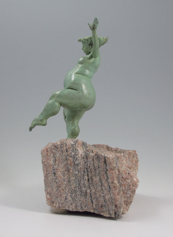 DANCING FEMALE NUDE BRONZE: signed Benyei, also stamped Artcast 21/55, 6 1/4'' height, affixed to natural granite plinth, 9'' overall.
