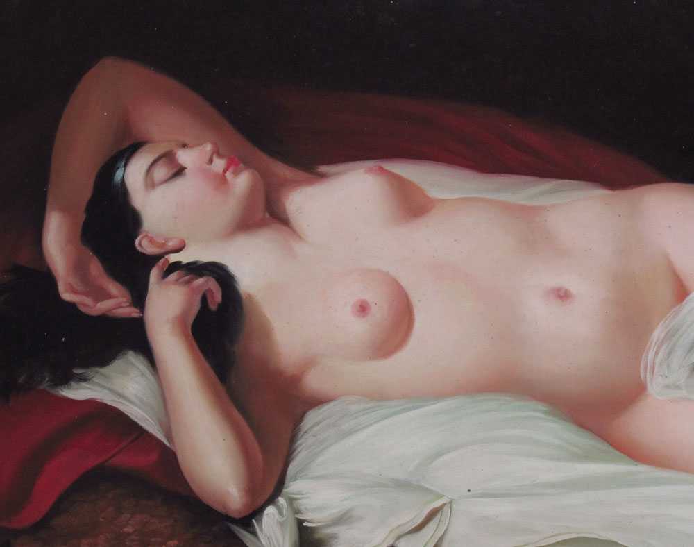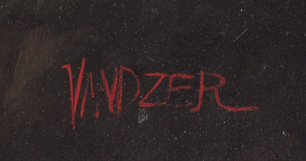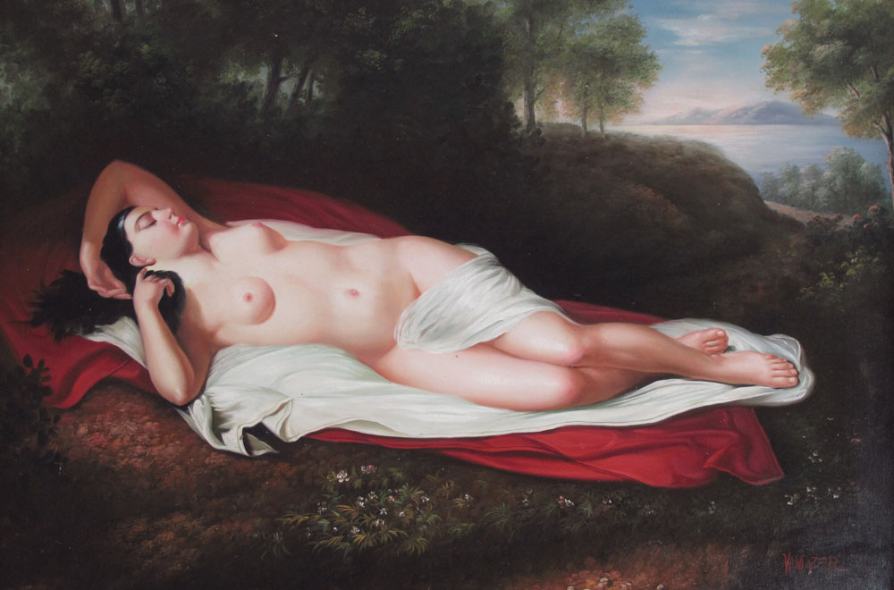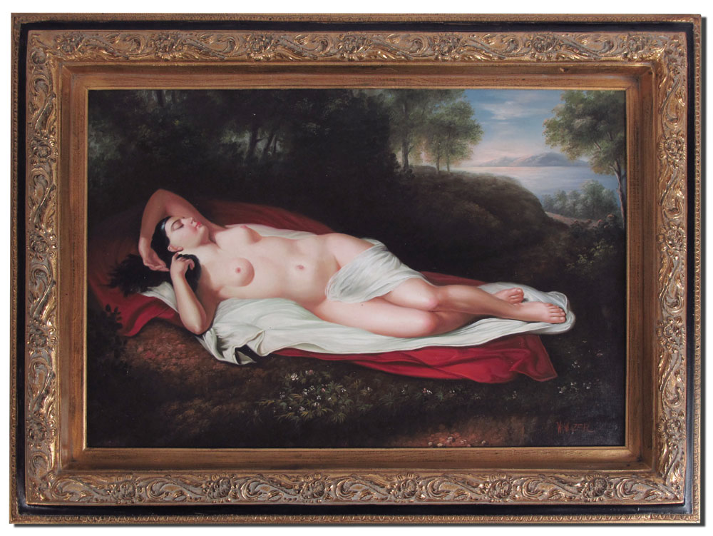 VANDZER, (): Modern decorative interpretation of a classic reclining nude portrait, OIL/Canvas, signed lower right Vandzer. 24'' x 36'', modern gilded frame, 33 3/4'' x 45 1/2''.
