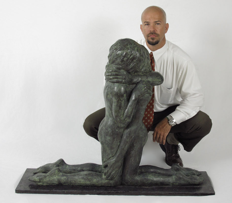 SALMONES, Victor, (Mexican, 1937-): Bronze, 'Abrazo', 36'' h. x 43'' w., sits on black marble plinth which is 48'' in width, incised signature, numbered 1/10. Copy of the provenance from the Galeria y Estudios Victor, signed by Salmones.