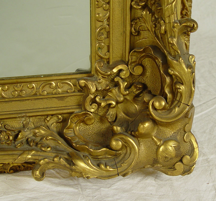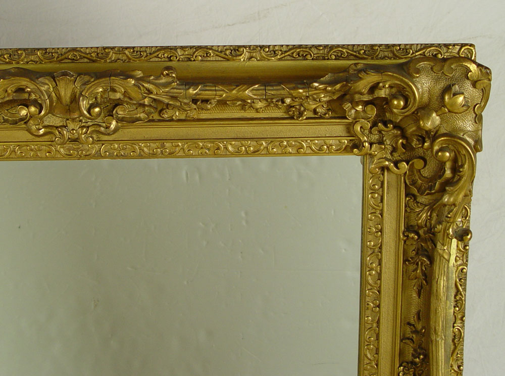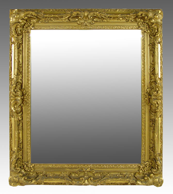 19TH C ROCOCO GILT MIRROR: One of the nicest we've seen. Gilt gesso over wood. Approx. 44'' x 38'' x 4 1/4''.