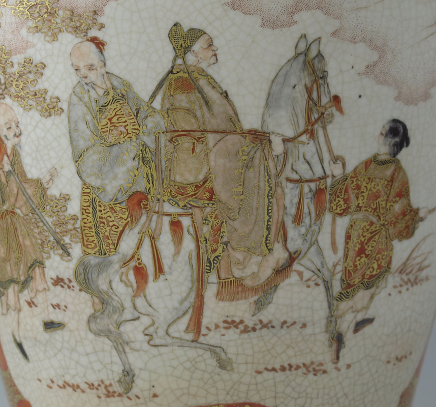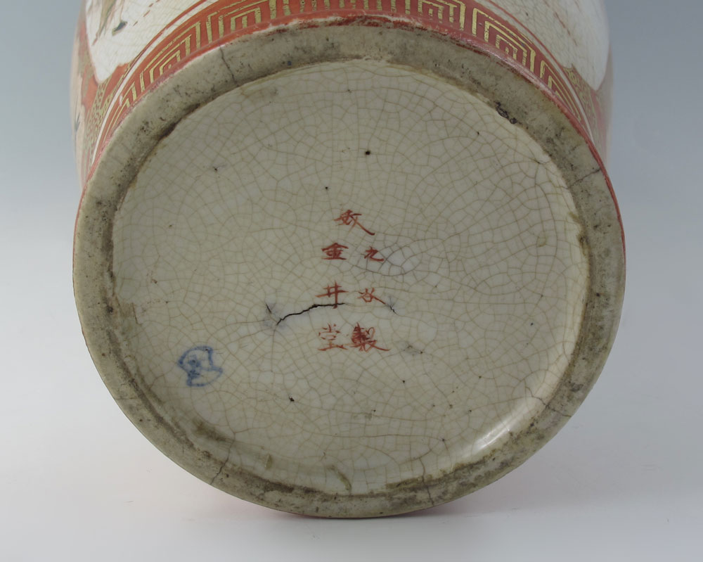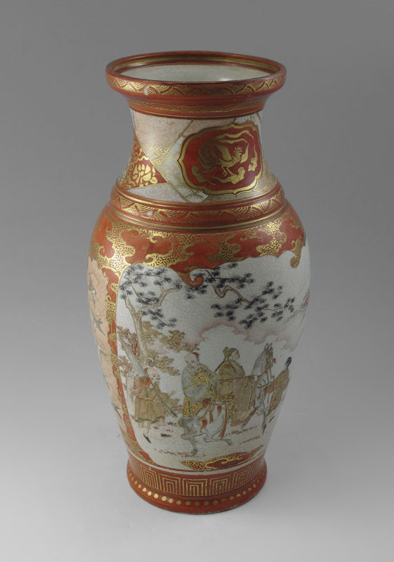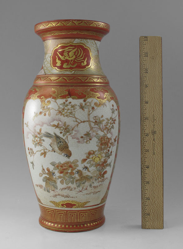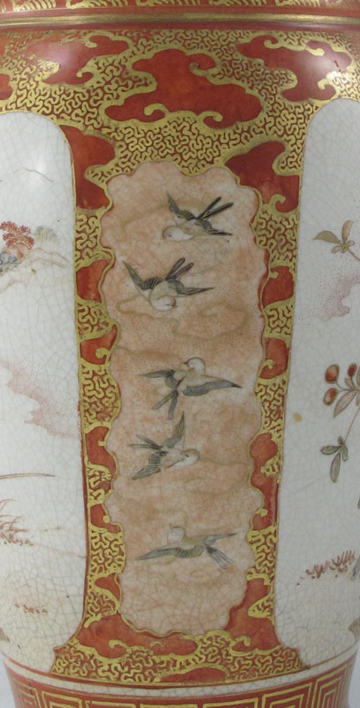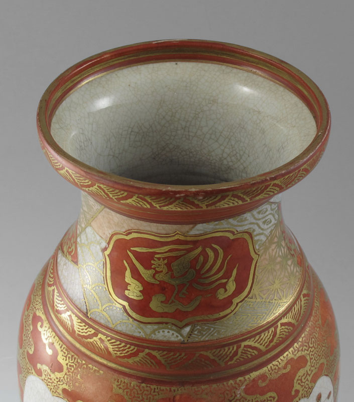 JAPANESE KUTANI PORCELAIN VASE: Late 19th C. hand painted parcel gilt porcelain, signed in characters, 13'' tall.