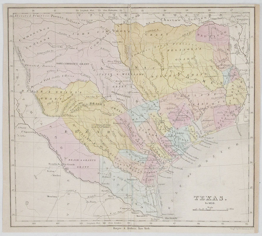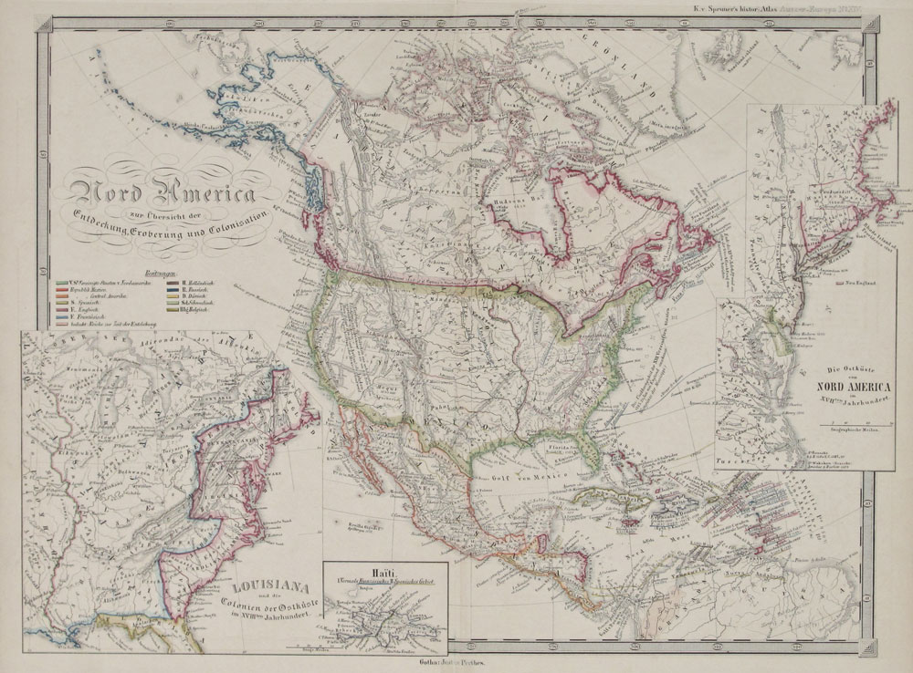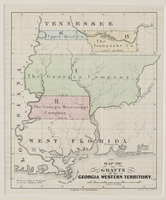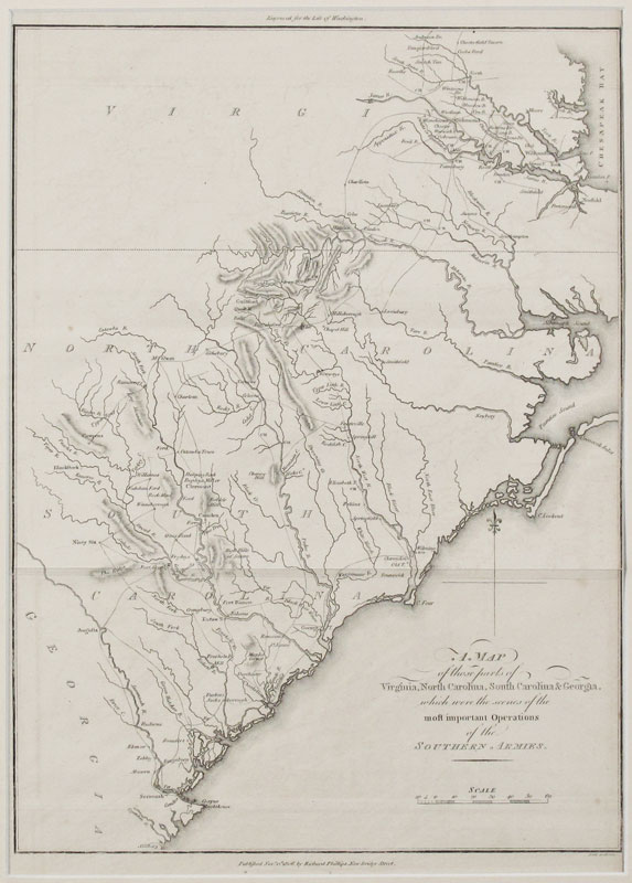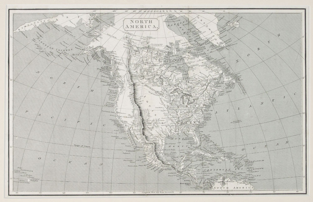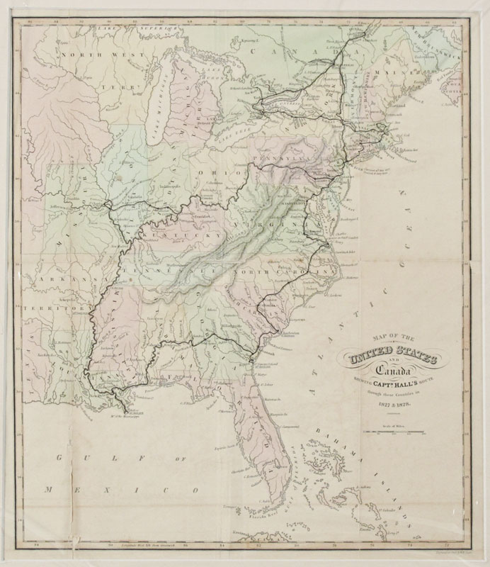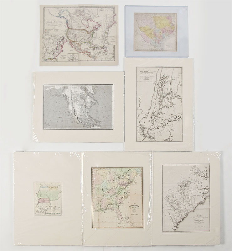 COLLECTION OF 7 ANTIQUE US MAPS: To include 1) 1806 ''A map of Virginia, North Carolina, South Carolina and Georgia''. Engraved by Samuel Neele, published by Richard Phillips. Sight size 15'' x 10 1/2''. 2) 1806 ''A Plan of New York, part of Long Island, & Showing the Position of the American & British Armies'' by Richard Phillips. Sight size 16 1/4'' x 10 1/4''. 3) 1800 ''Maps of the Grants of the Georgia Western Territory'' by T. Sinclair. Sight size 7 1/2'' x 6 1/4''. 4) 1829 ''Map of the United States and Canada showing Capt. Hall's route through the countries in 1827 & 1828'', engraved by W. H. Lizars. Sight size 13 1/4'' x 11 3/4''. 5) 1836 ''Texas in 1836'' by Harper & Brothers, New York. 8 1/2'' x 9 3/4''. 6) 1840's ''Nord America'' with insets of Louisiana, Haiti and New England by Justus Perthes. 13 1/4'' x 17 1/2''. 7) ''North America'' unknown maker, dates early to mid 19th century. Sight size 9 3/4'' x 15 1/2''.