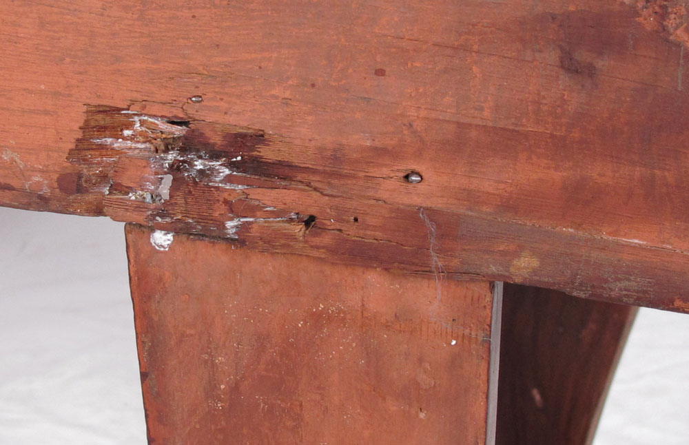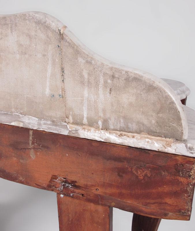 CONDITION: Note repair to backsplash, repair on back of base, wambly, uneven finish.