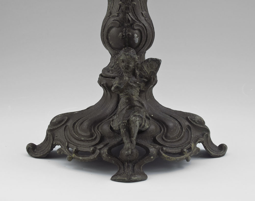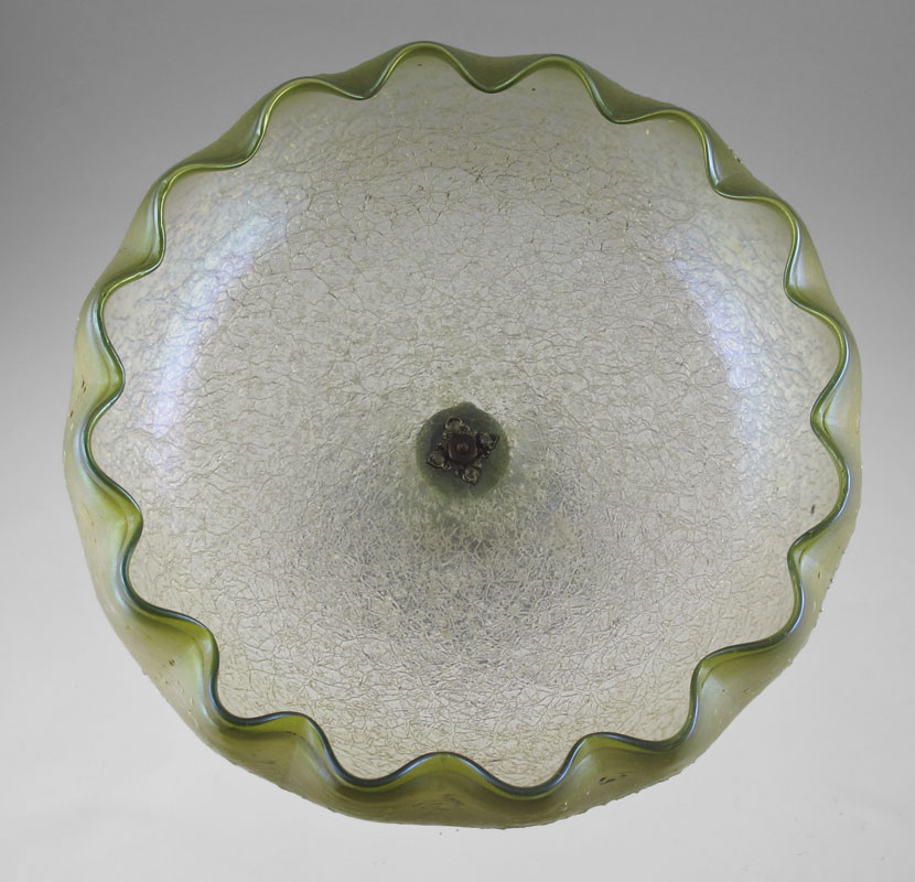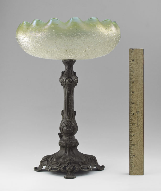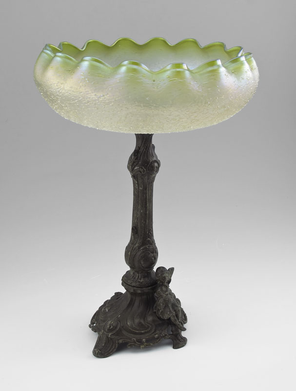 LOETZ ART GLASS FIGURAL COMPOTE: Attribution. Metal base, glass bowl, 14 1/2'' tall, 10'' dia.