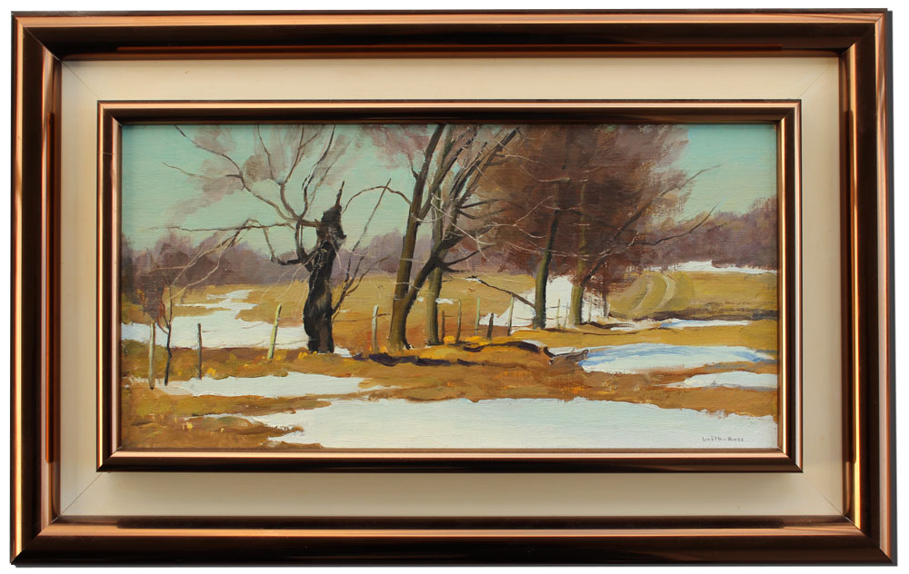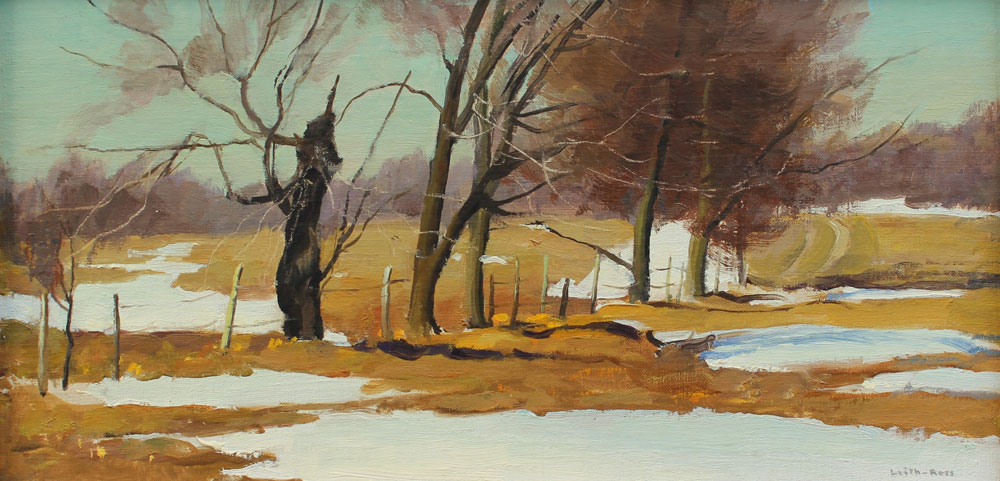 LEITH-ROSS, Harry, (American, 1886-1973): Winter Thaw Landscape, OIL/Canvasboard, 8'' x 16'', signed lower right, contemporary metal frame, 14 1/2'' x 21 1/2''.