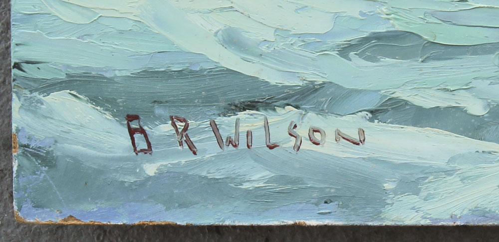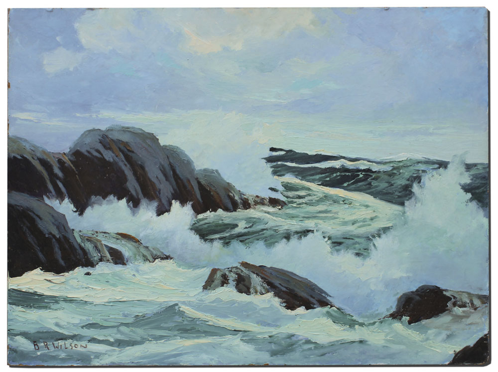 WILSON, B. Russell, (Canadian, 20th C.): Peggy's Cove, OIL/Masonite, 20'' x 24'', signed lower left, unframed.