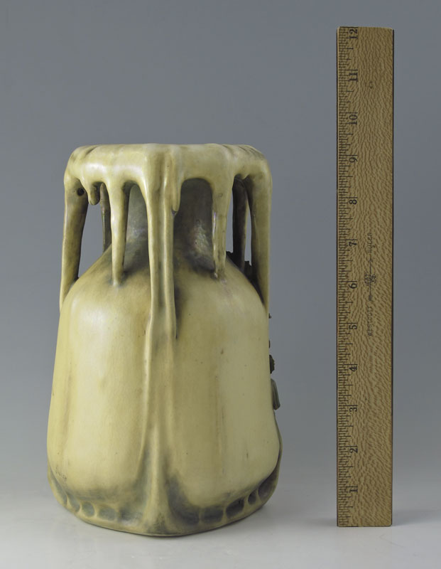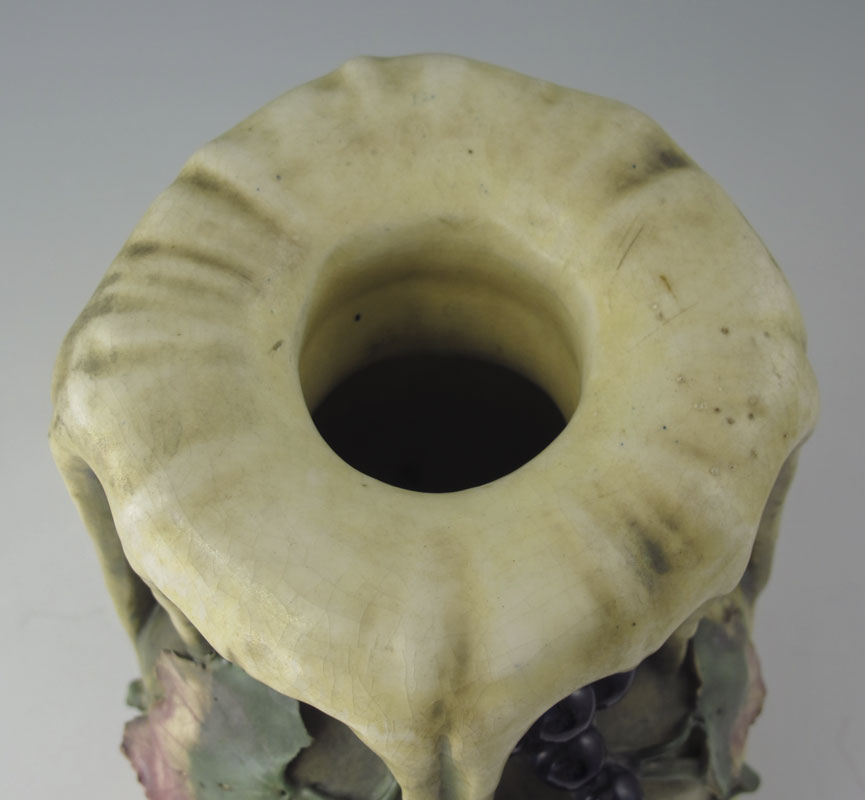 AMPHORA ART POTTERY VASE: Grapes and vines motif, impressed Amphora pottery mark, 8620 56. 9 3/8'' h. x 6 1/2''.