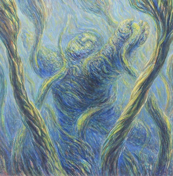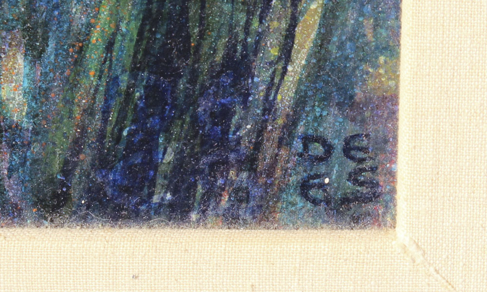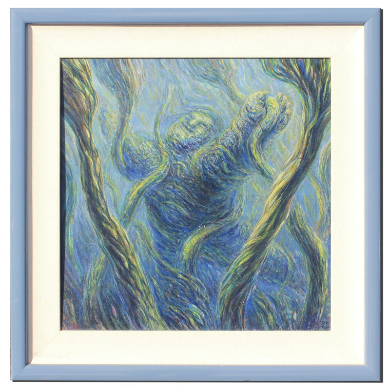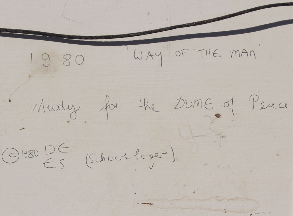 SCHWERTBERGER, DE ES(Dieter), (Austria, 1942-): ''Way of the Man'', Study for the Dome of Peace, Oil/Board, sight size 23'' x 23 1/2'', monogrammed lower right, titled verso, dated 1980, painted blue frame with wear, 32'' x 32''.