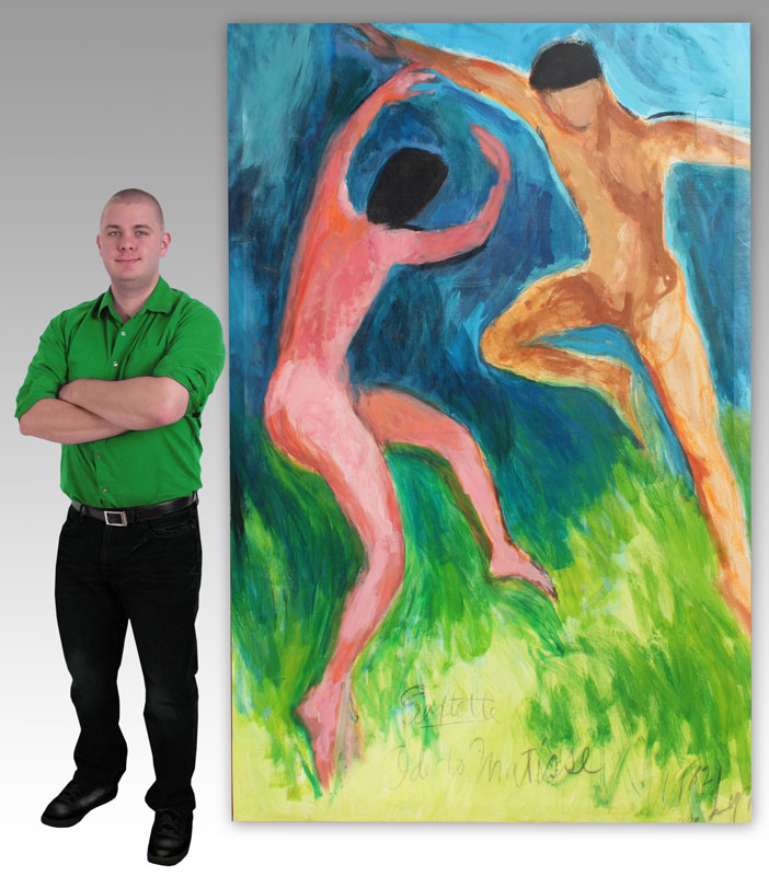 LYNN, Nancy, (American, 20th C.): ''Sextette, Ode to Matisse'', Oil/Canvas, 77'' x 53'', signed, titled and dated 1982, unframed.