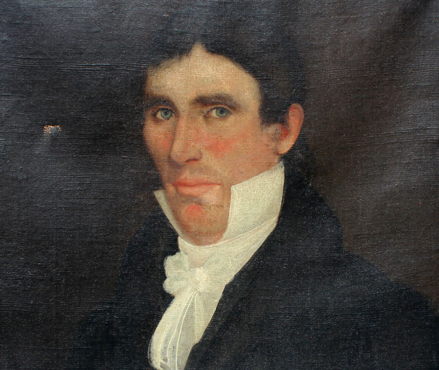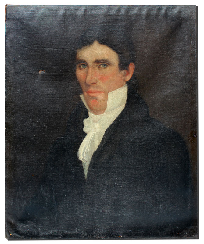 19th C. PORTRAIT PURPORTEDLY OF A PAST GOVERNOR OF INDIANA: Oil/Canvas, 28'' x 23 1/2'', wooden frame, 32 1/2'' x 26 1/2''.