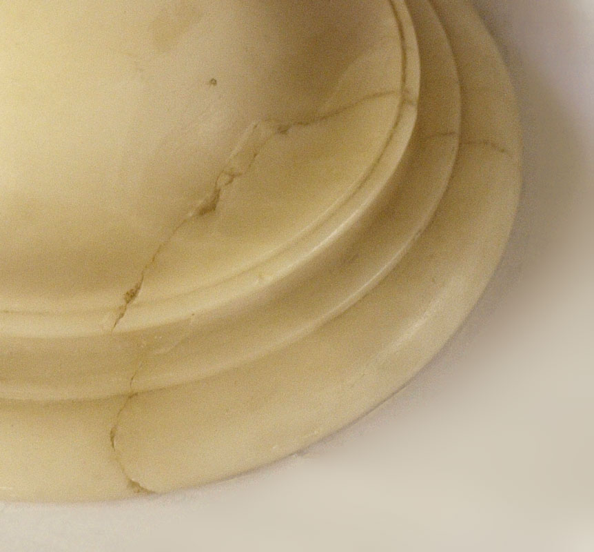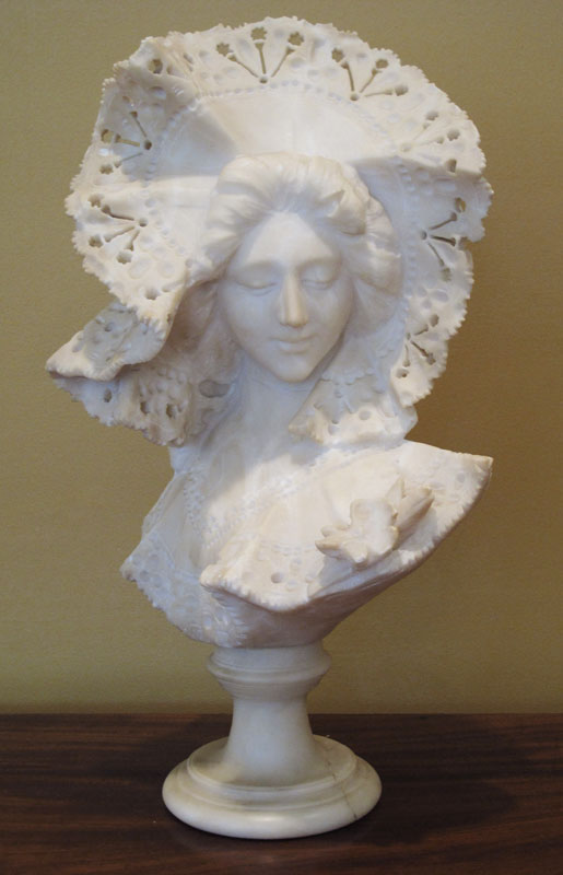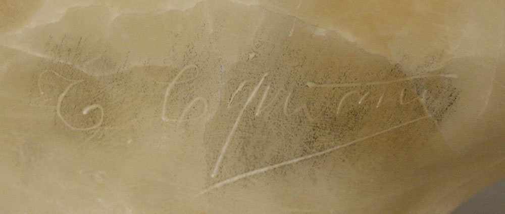 ALABASTER BUST OF A MAIDEN SIGNED CIPRIANI: 17'' h., rests on a beveled plinth with crack and repair, incised signature verso.