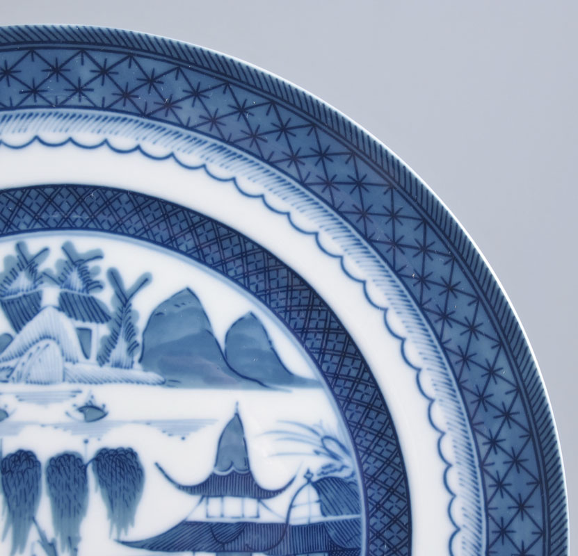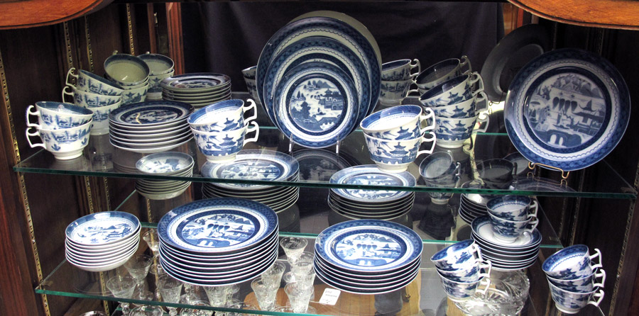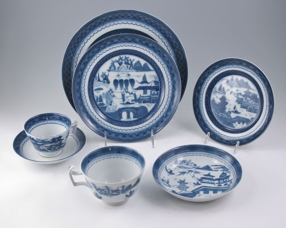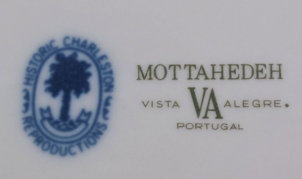 MOTTAHEDEH HISTORIC CHARLESTON CANTON CHINA: Approx. 60 pieces to include 10 dinner plates (10''), 7 salad plates (8 5/8''), 8 bread plates (7''), 8 fruit/dessert bowls (6 1/4''), 11 large cups, 8 cups and 8 saucers (5 5/8'').