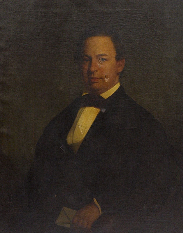 19TH C PORTRAIT PAINTING OF A GENTLEMAN: Oil/Canvas, 36'' x 29'', encased in period gilded and carved frame with overpaint, wear and missing gesso, 47'' x 41'', no visible signature.