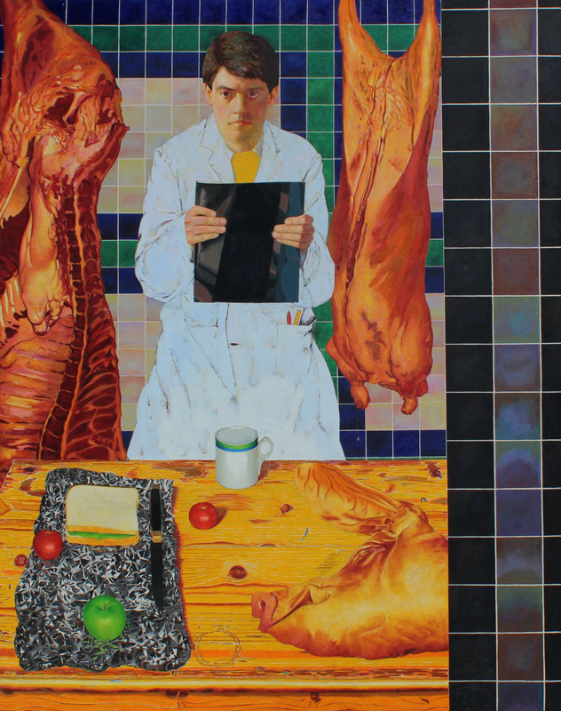 DEWHURST, Tom, (British, 20th C.): Portrait of a Boy, ''Scenes from the Toon, The Butcher's Boy'' 1981 London, OIL/Canvas, 60'' x 48'', framed, 61'' x 49''.