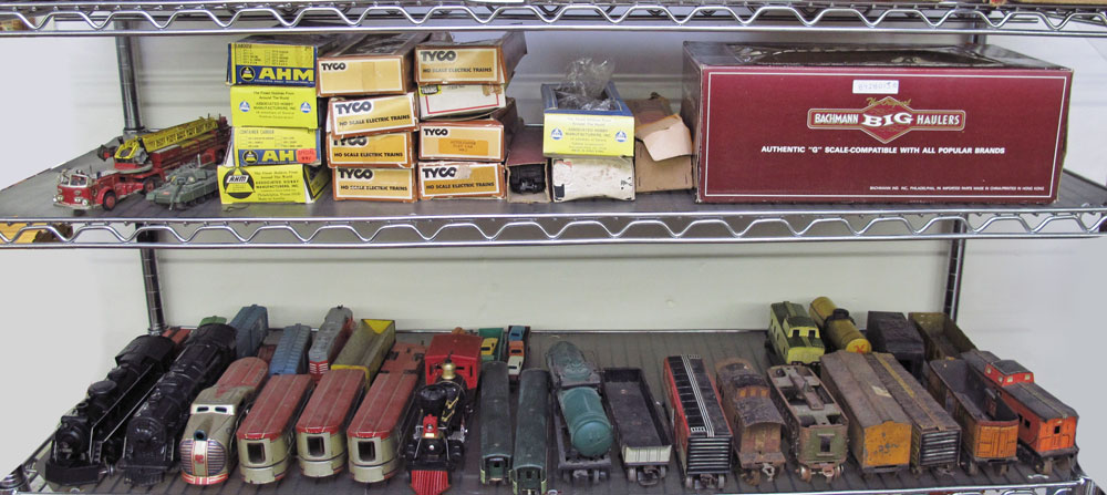 COLLECTION ASSORTED O AND HO GAUGE TRAINS: Approx. 50 O and HO gauge to include 3 Marx engines. Cars to include Marx, American Flyer, Wyandotte, Tyco, Bachman and more. No boxes.