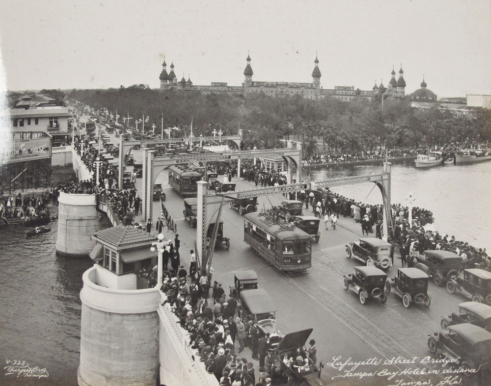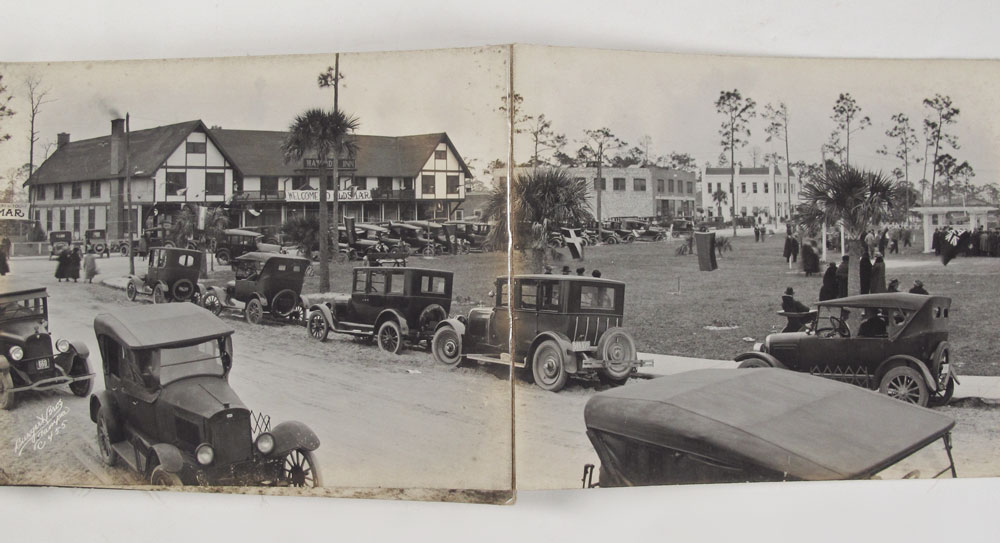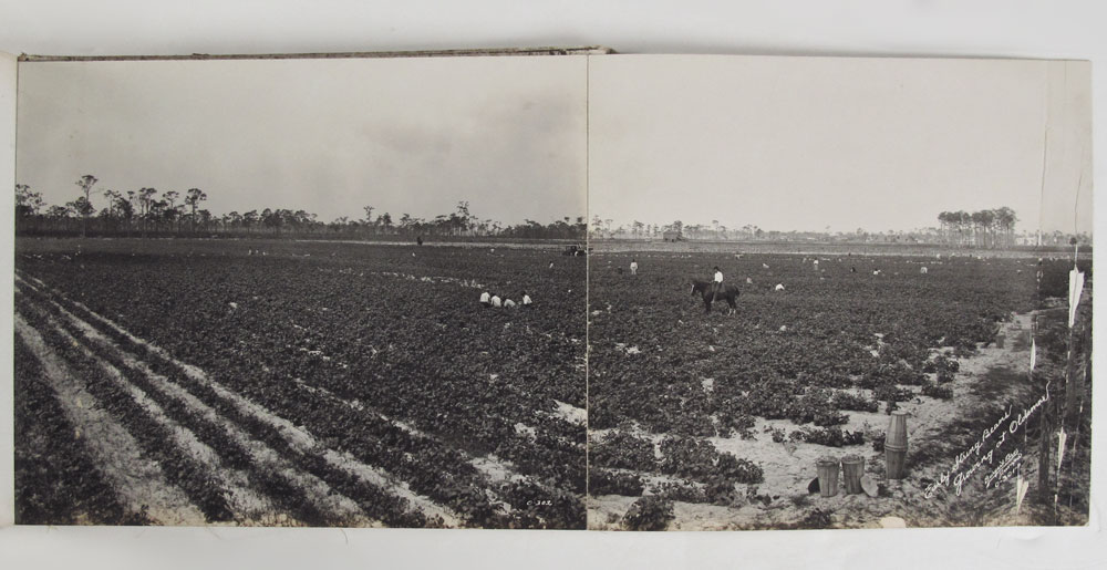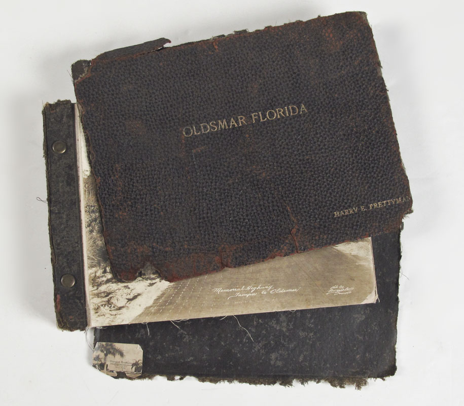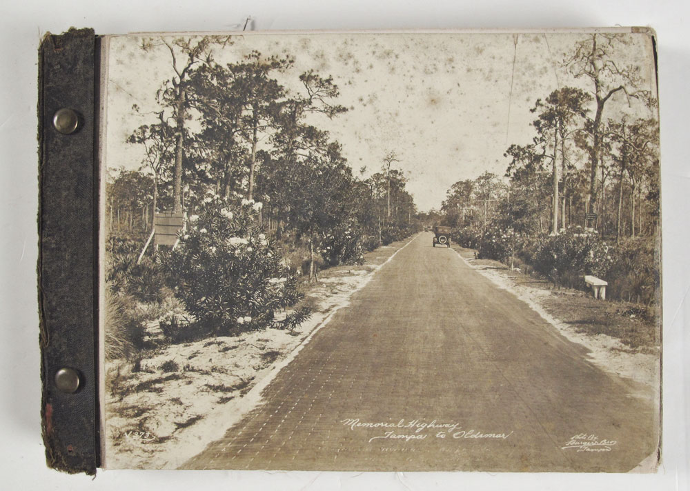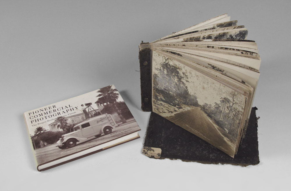 BURGERT BROTHERS VINTAGE OLDSMAR FLORIDA BOOK: Late early 20th century collection of approx. 58 photographs of Oldsmar and the surrounding areas by the Burgert Brothers. Photos affixed to linen and bound in a book. Measures 1 1/4'' x 11'' x 8''. Sold with contemporary book chronicling the Burgert Brother photography in the Tampa Bay area.