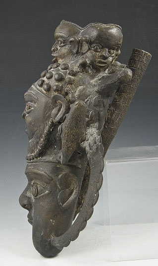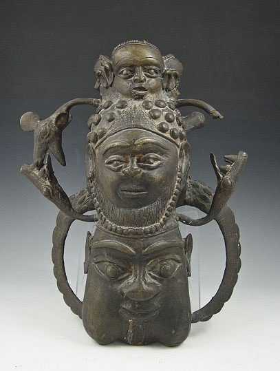 AFRICAN BENIN BRASS FIGURAL SCULPTURE: 16'' x 12'', circa 1950's.