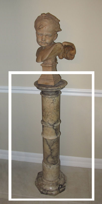 WHITE MARBLE PEDESTAL: 41 1/2'' h. x 12'' base.