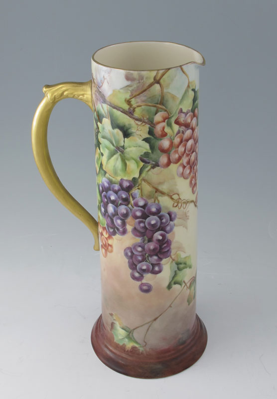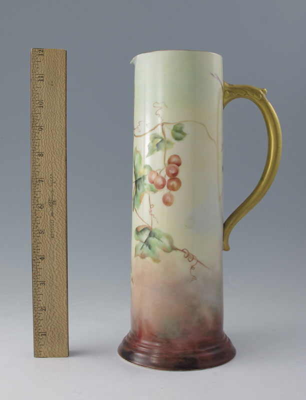 CERAMIC ART AMERICAN BELLEEK TALL TANKARD: Ca. 1906-1924. Hand painted in a grape design 11 3/4'' tall.