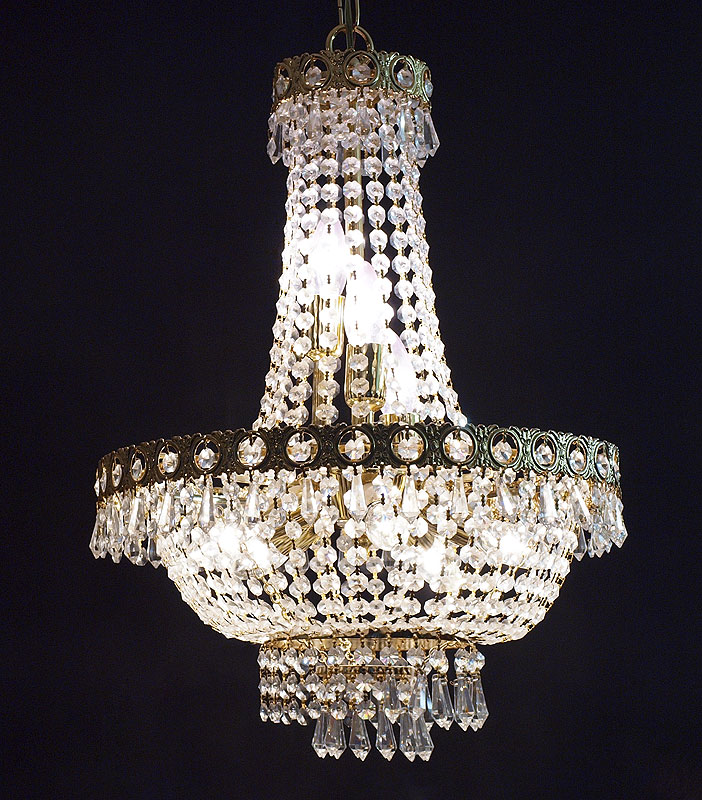 FRENCH EMPIRE STYLE BRASS AND CRYSTAL CHANDELIER: 21 1/2'' h. x 15'' dia. excluding chain.