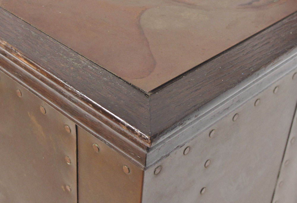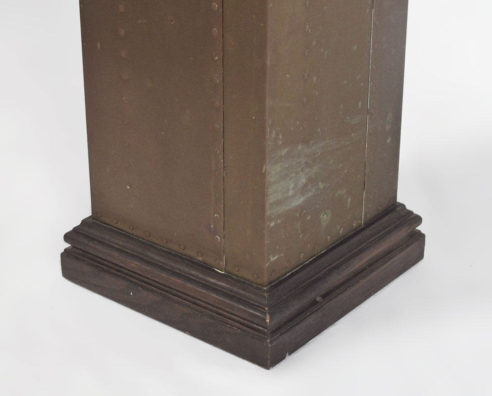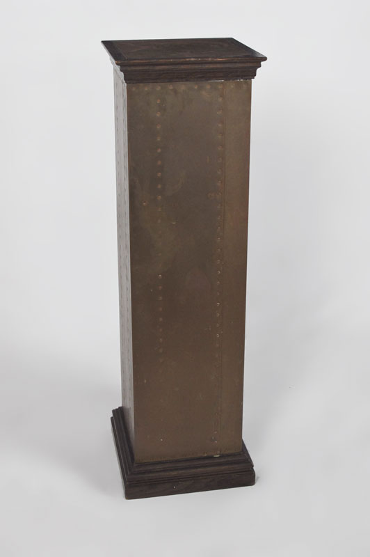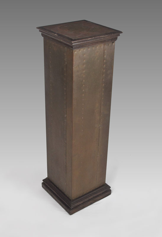 ARTS AND CRAFTS COPPER CLAD PEDESTAL: Oak frame with copper clad sides and top. 40'' h. x 12''.