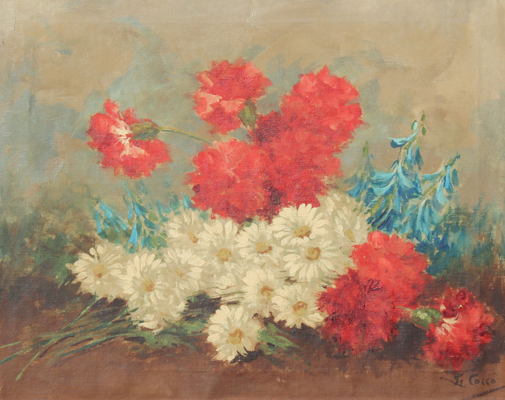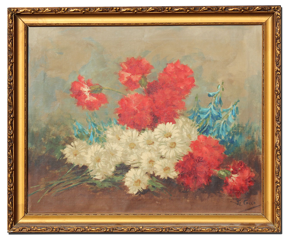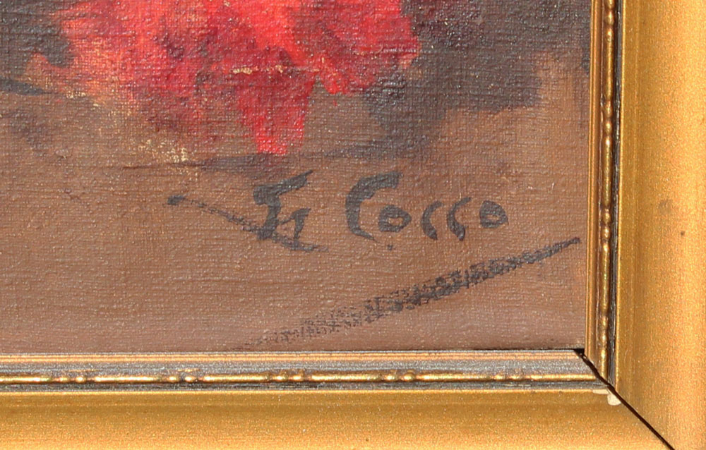 GIUSEPPE, Alberto Cocco, (Italian 1879-1963): Still Life with Carnations, Oil/Canvas, 15 1/2'' x 18 1/2'', signed lower right, gilded frame with minor wear, 19'' x 22''.