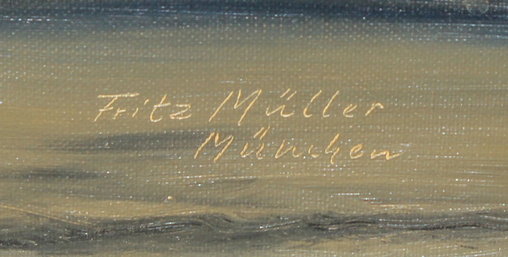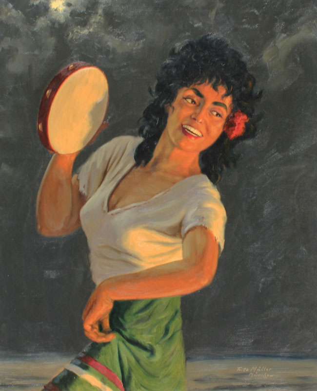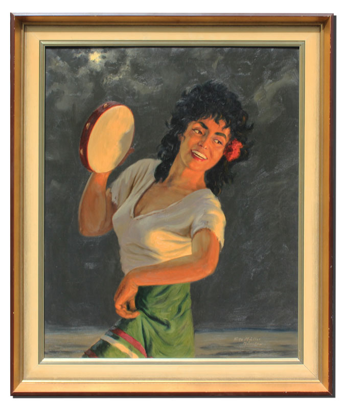 MULLER, Fritz, (German, 1897-): Smiling Young Gypsy Girl Tambourine Player, Oil/Canvas, 23 3/4'' x 19 3/4'', signed lower right 'Fritz Muller, Munchen', framed, 28'' x 24''.