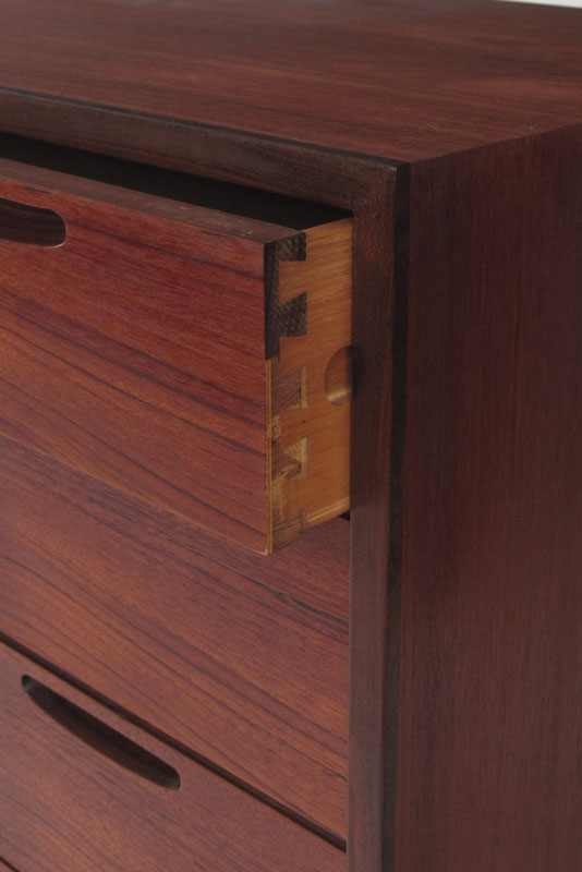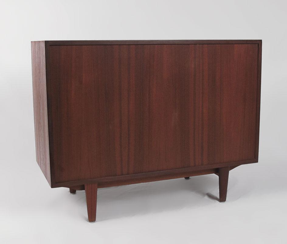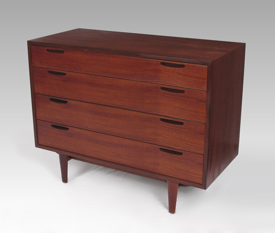 DANISH MODERN TEAK 4 DRAWER CHEST: Four four length drawers. The back is finished as nicely as the front. approx. 30'' tall x 39'' x 17 3/4''. The matching dresser is at previous lot 120.
