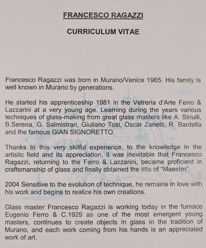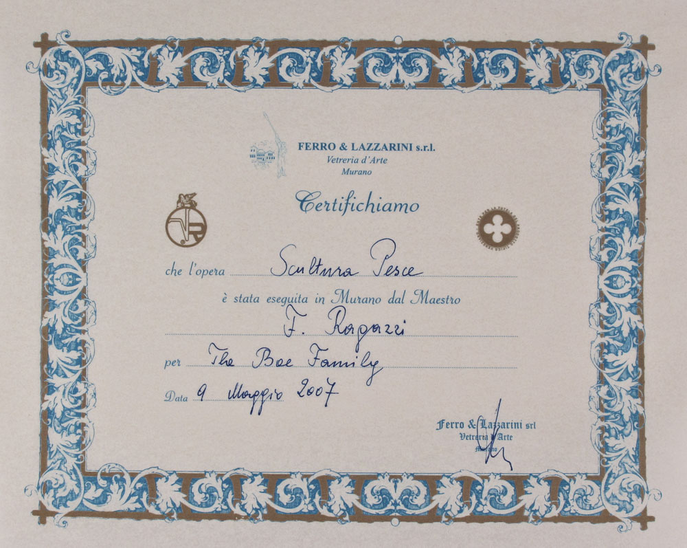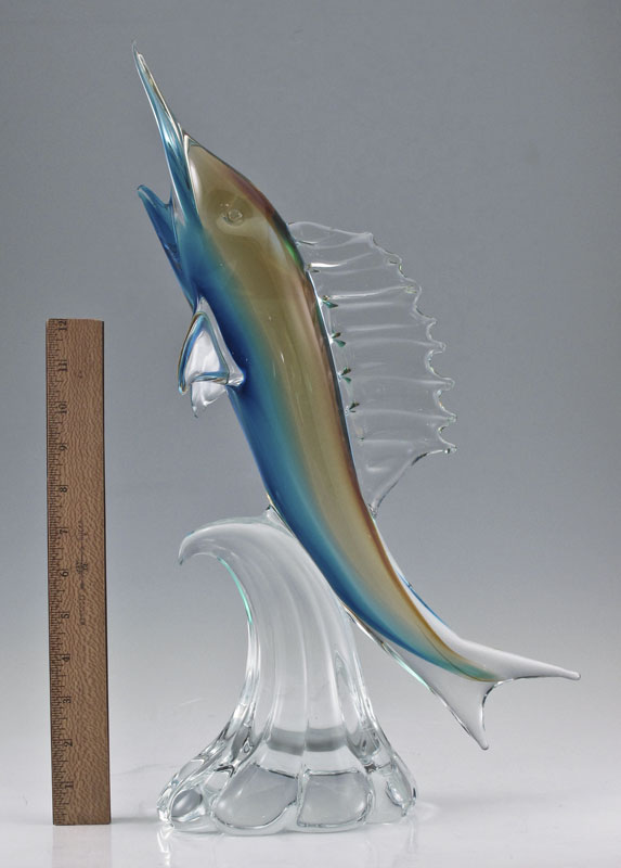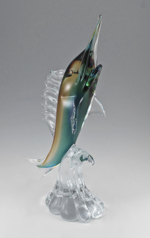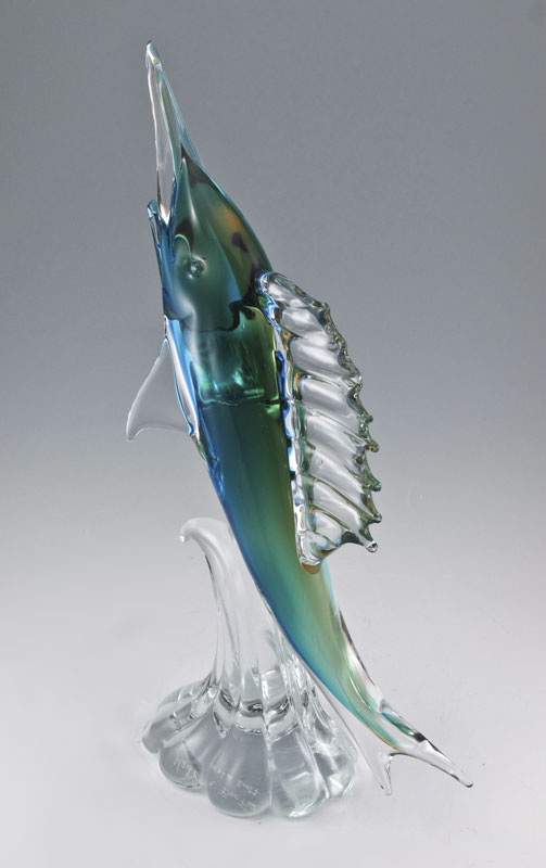 RAGGAZZI MURANO GLASS SWORD FISH SCULPTURE: Signed '' Made for the Boe Family, Venezia, 2007'', 19'' h.