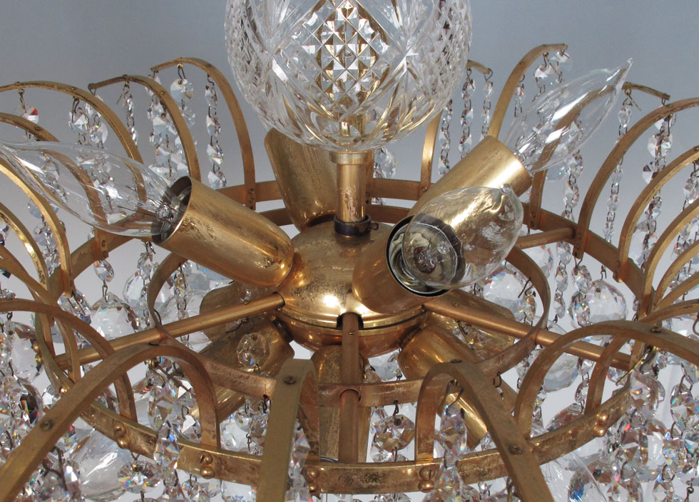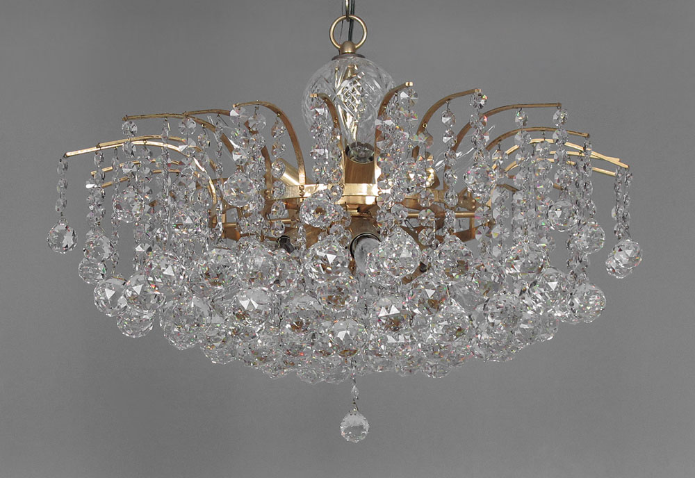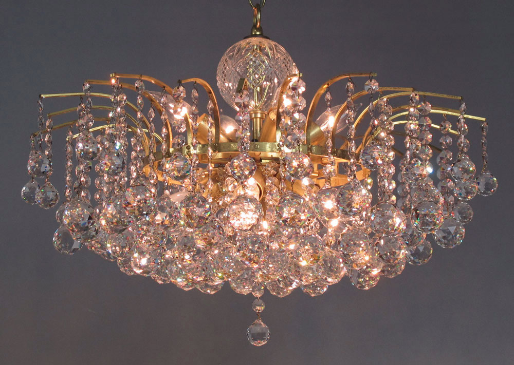 CRYSTAL CHANDELIER: 6 light, faceted crystal ball prisms. 16'' h. x 23'' dia.