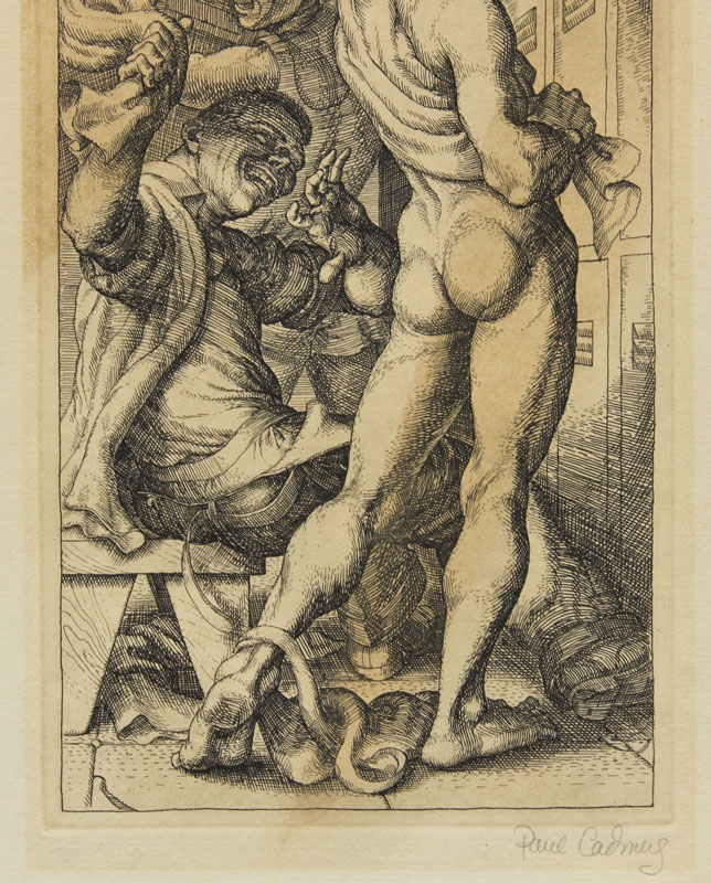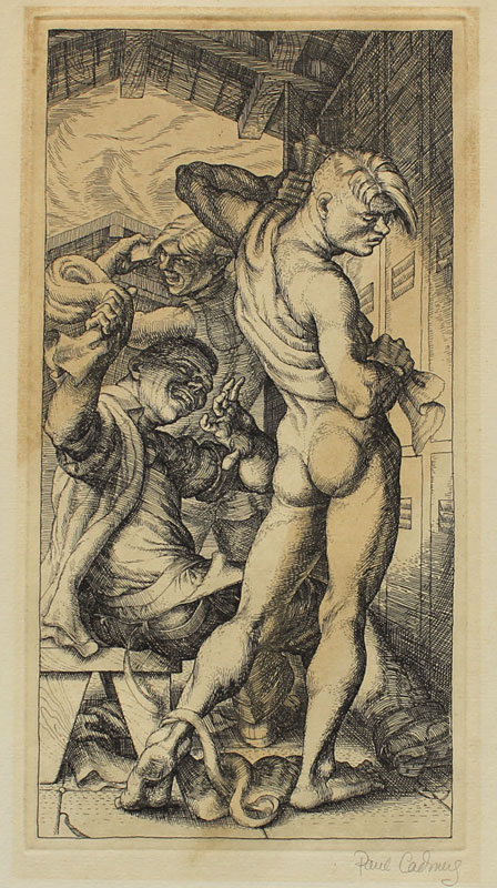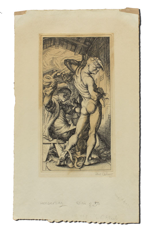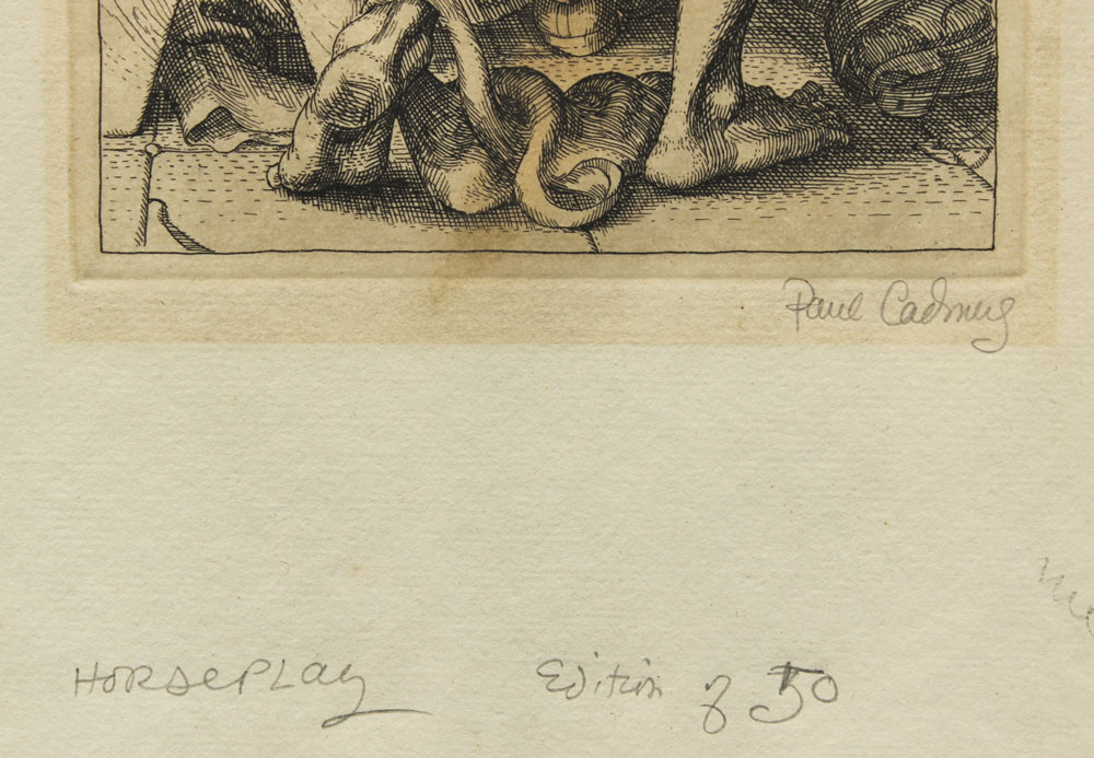 CADMUS, Paul, (American, 1904-1999): Horseplay, Etching, 14 1/4'' x 8 1/4'' with margins, impression size 9'' x 4 3/4'', pencil signed, edition of 50, unframed, on Whatman paper, watermark visible upper margin.