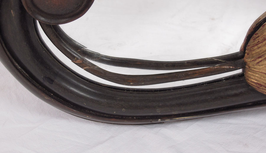 CONDITION: Note section loss on lower flower, chips, repair to vine.