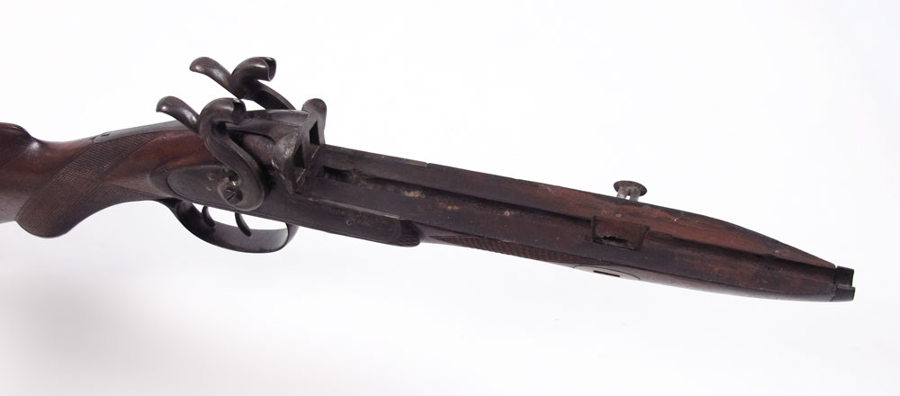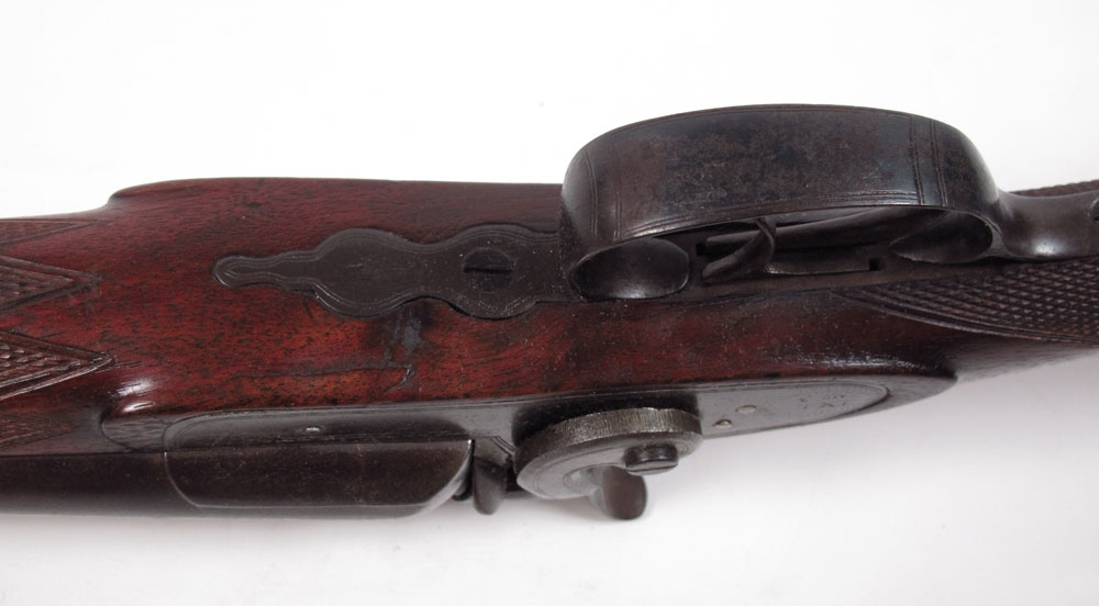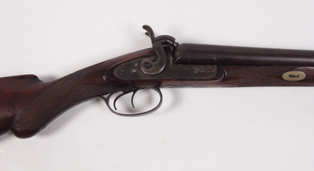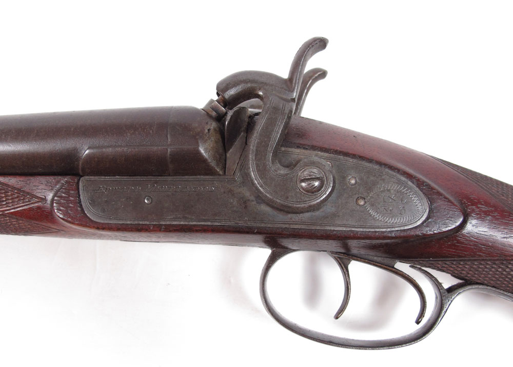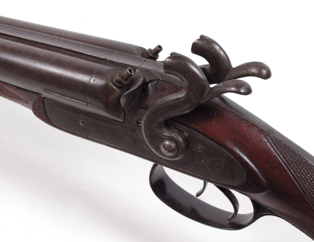 CONDITION: Action current works, however not guaranteed to continue. Minor scratches to wood, nice age patina on barrels.