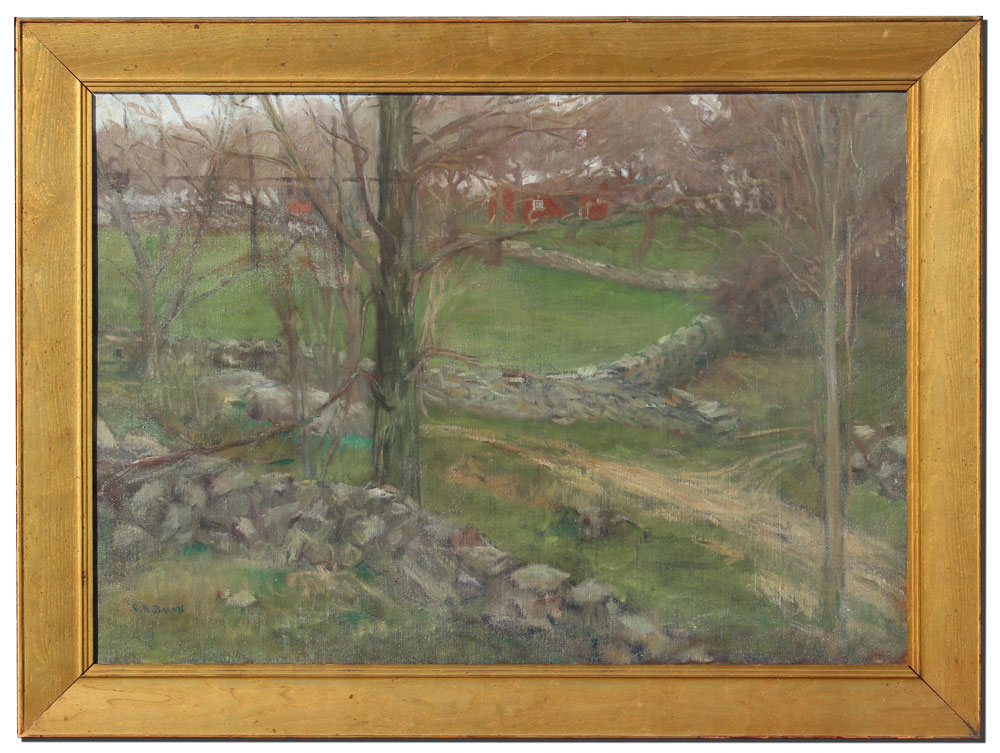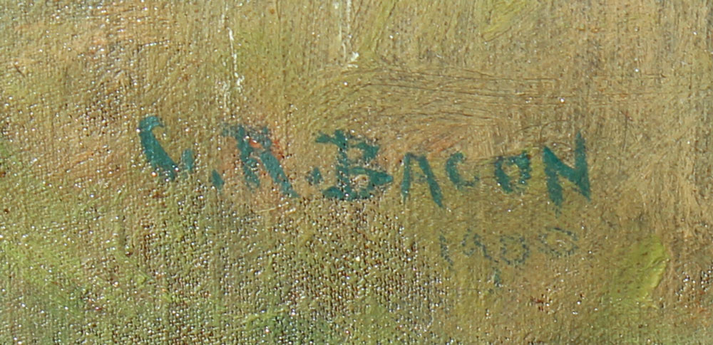 BACON, Charles Roswell, (American, 1868-1913): Country Estate View Through the Trees, Oil/Canvas, 24'' x 34'', signed lower left and dated 1900, encased in gilded oak frame, 29 1/2'' x 39 1/2''.