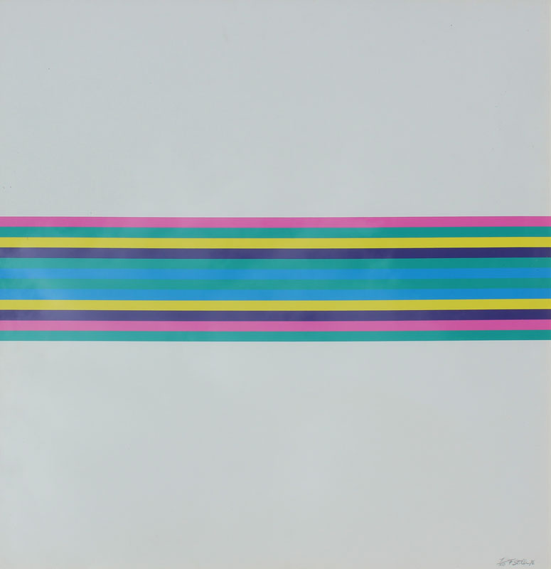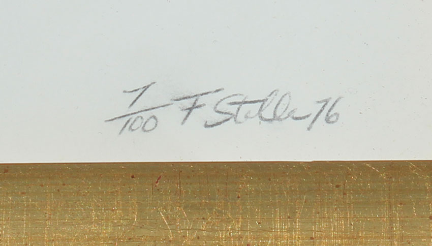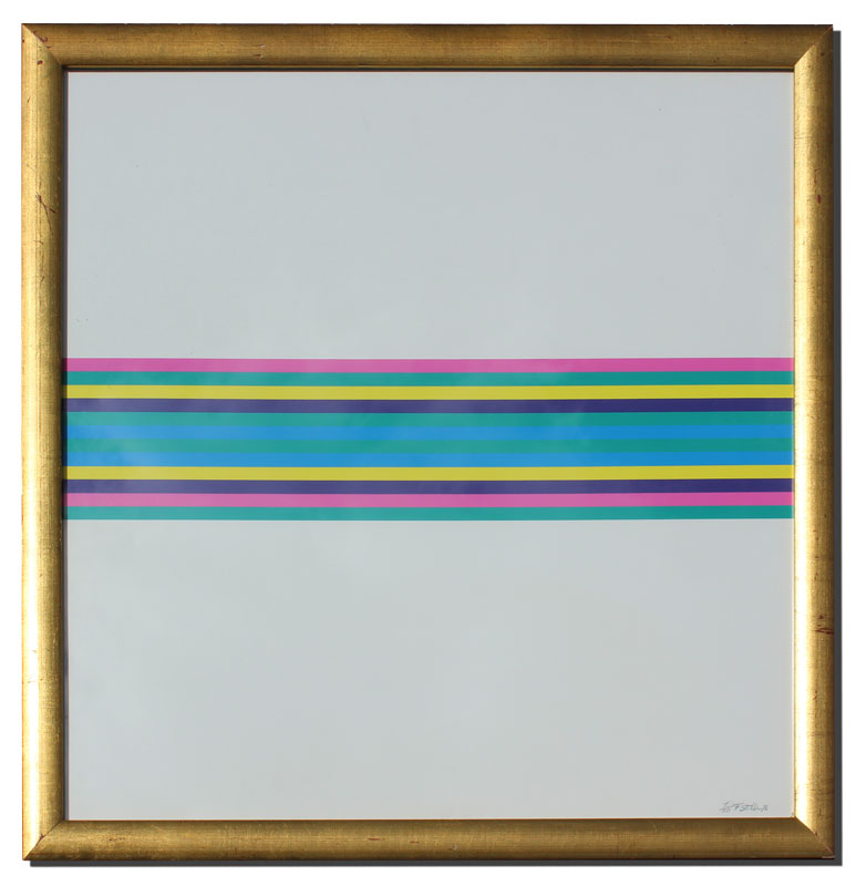 FRANK STELLA? SERIGRAPH: Geometric Composition in Colors, Serigraph, 26'' x 26'', signed lower right, dated 76, numbered 7/100, gold frame, 30'' x 30''.