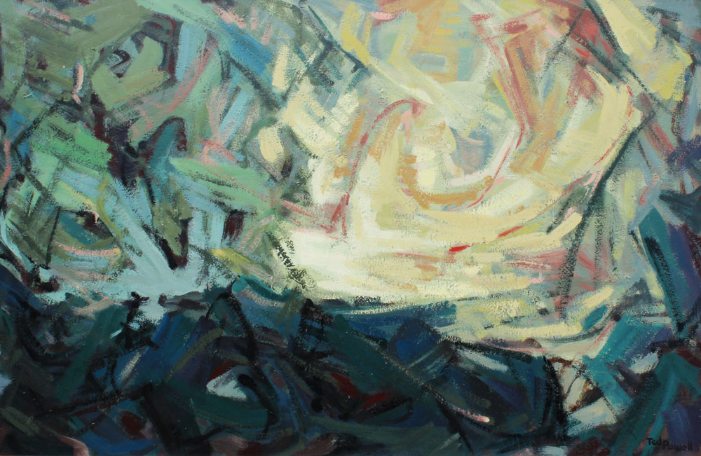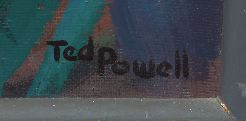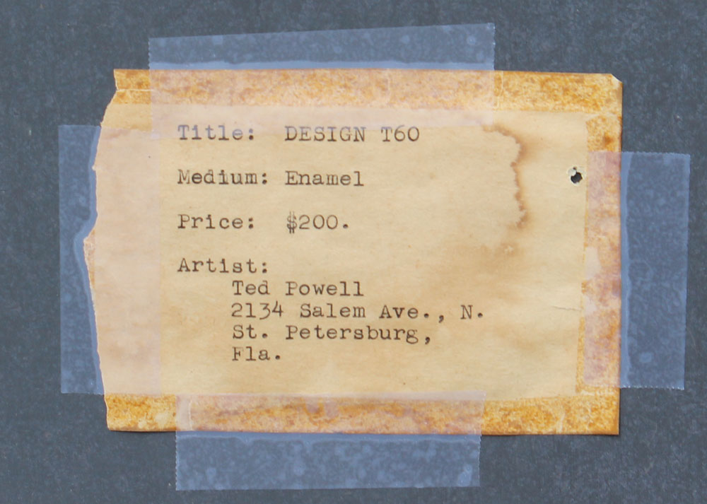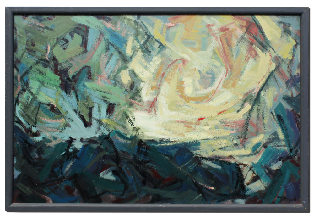 POWELL, Ted, (American, 20th C.): ''Design T60'', Oil/Canvas Panel, 32'' x 48'', signed lower right, painted original frame, 34'' x 50'', original artist's label affixed verso.