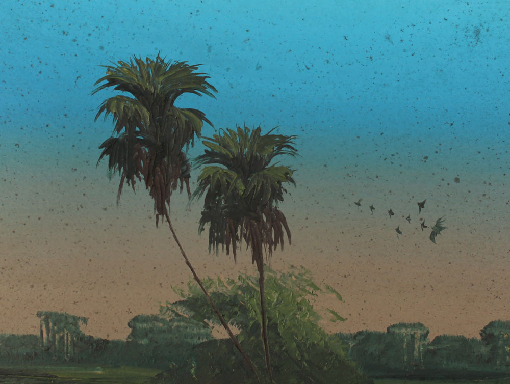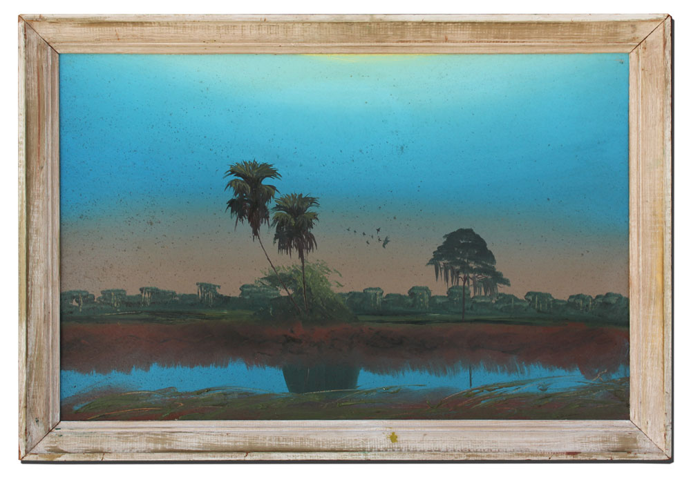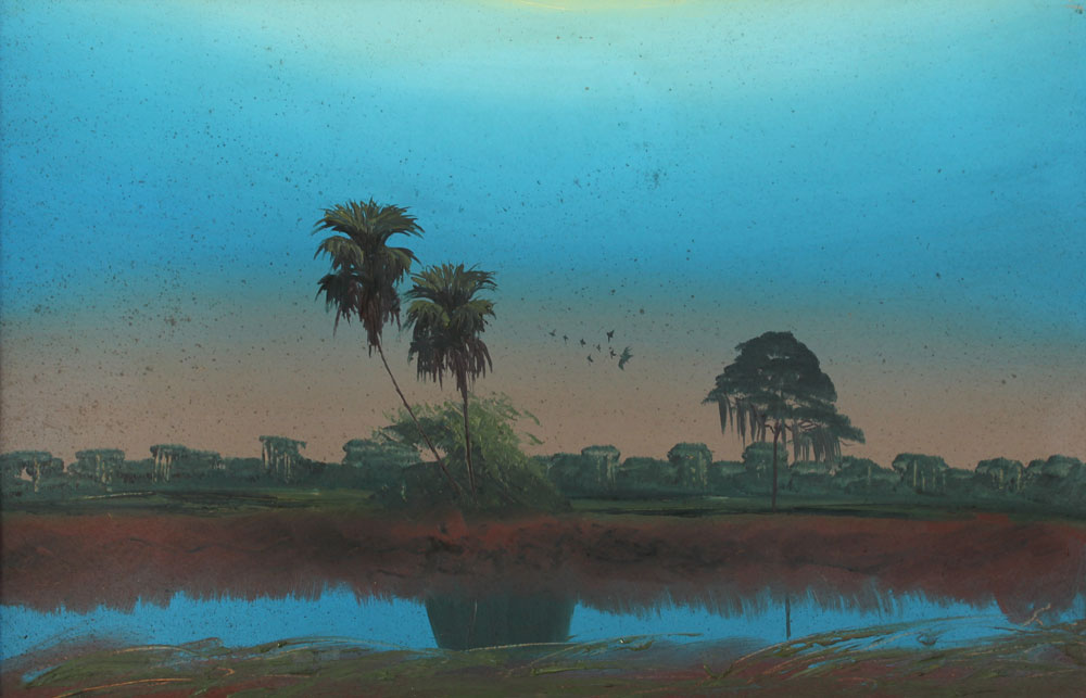 HAIR, Alfred, attributed (American, 20th Century): Florida Highwaymen sawgrass scene with birds characteristic of Alfred Hair, OIL/Upson. Unsigned. 24'' x 36'', molding framed 27 1/2'' x 39 1/2''.