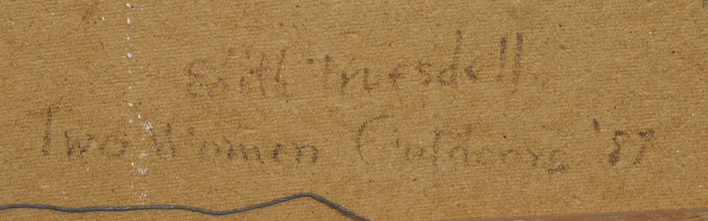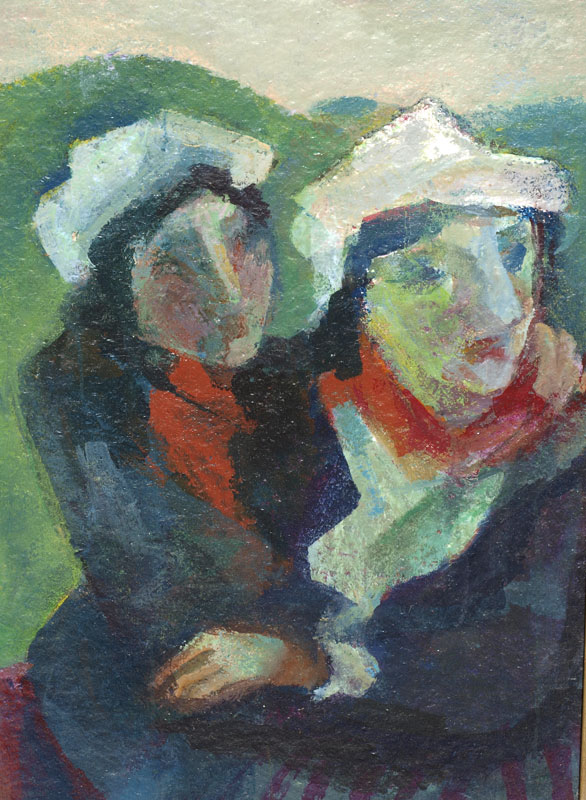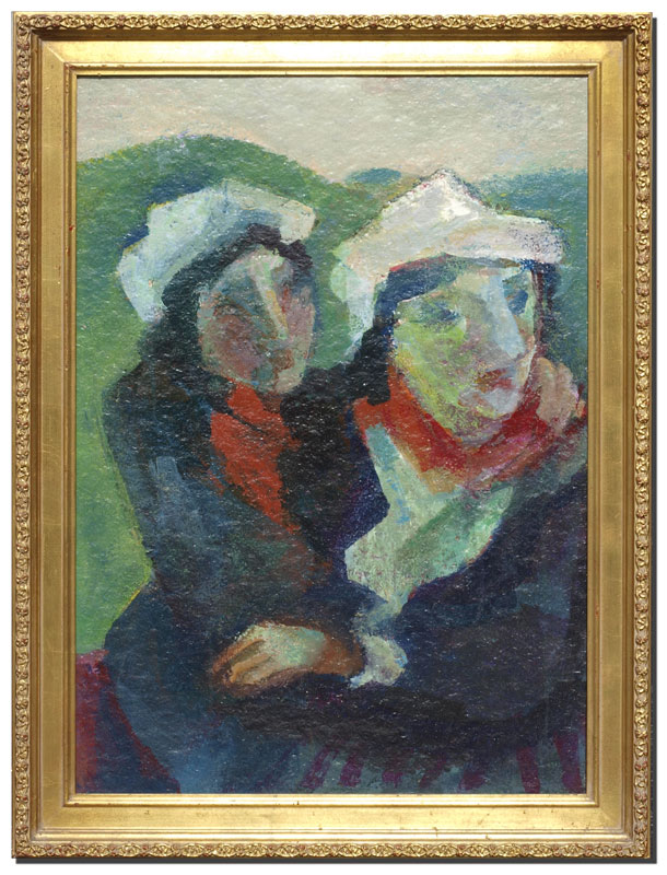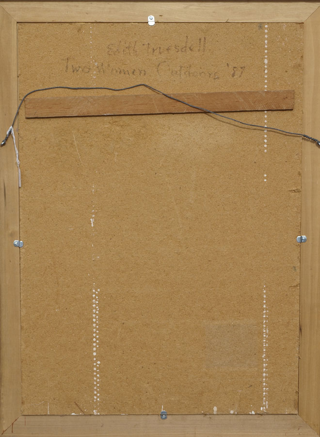 TRUESDELL, Edith, (American, 1888-1987): ''Two Women Outdoors'', Oil/Masonite, 31'' x 22'', signed and titled verso, dated '87, framed, 36 1/2'' x 27 1/2''.