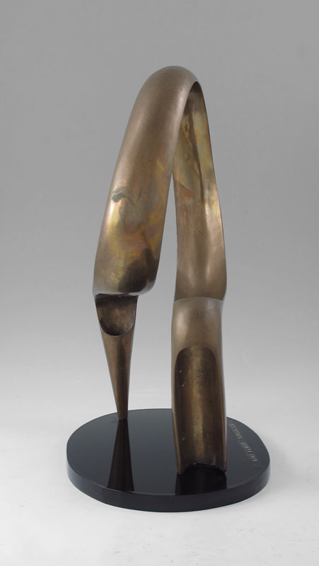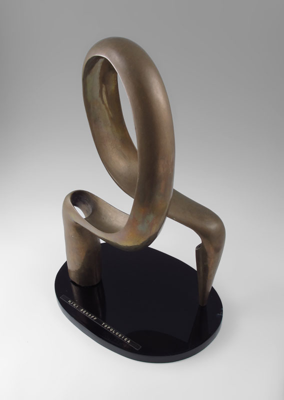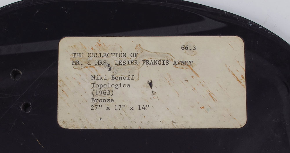 BENOFF, Miki, (American, 20th C.): ''Topologica'', Abstract Bronze, 13 1/4'' x 7 1/2'', label affixed underneath the affixed black acrylic base, from the Collection of Mr & Mrs Lester Francis Avnet.