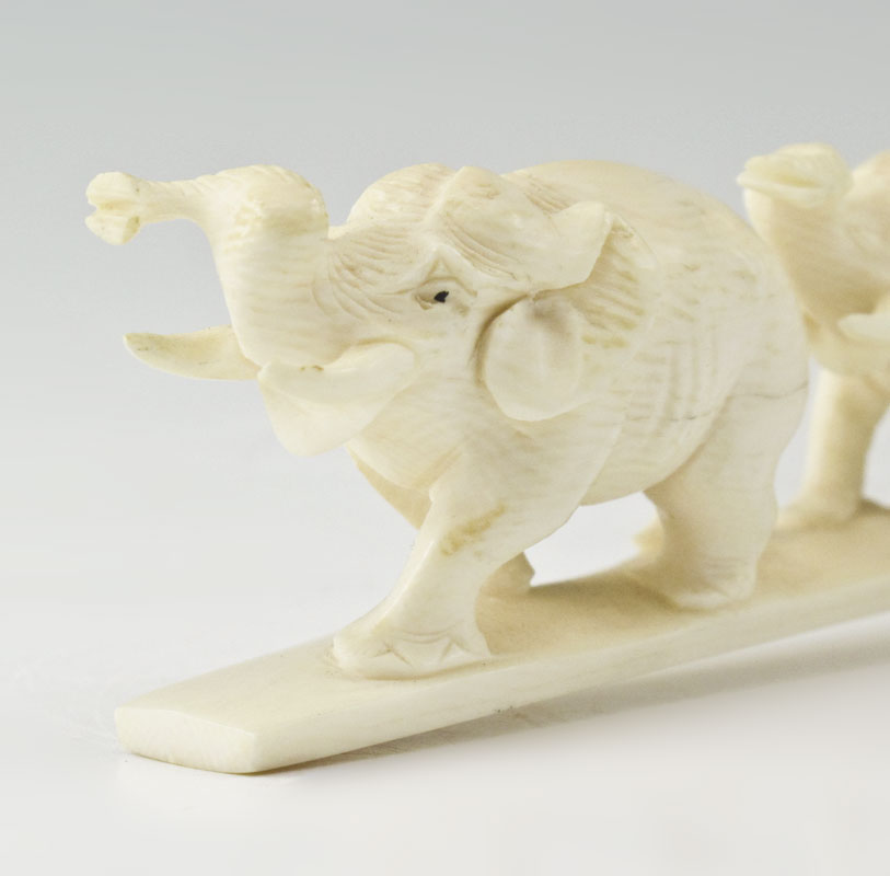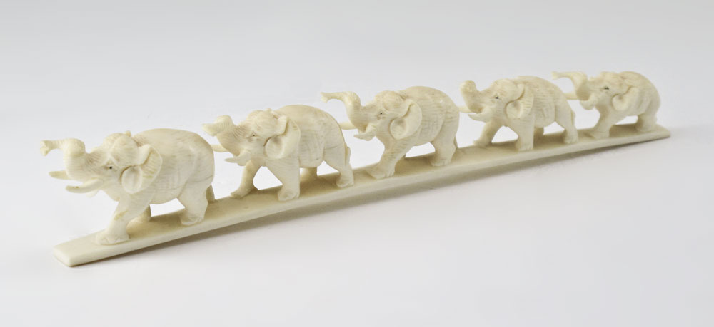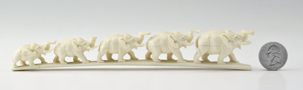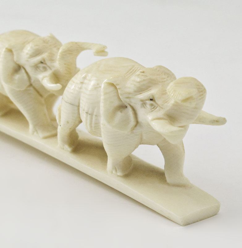 CARVED IVORY ELEPHANT BRIDGE: 5 elephants, 8'' l.