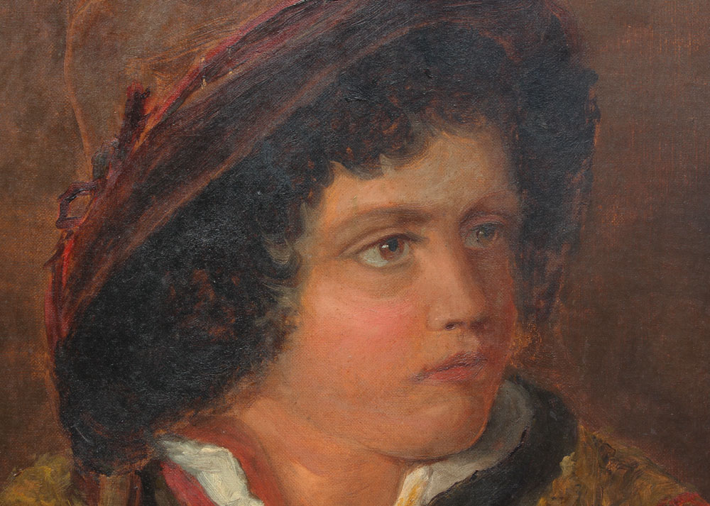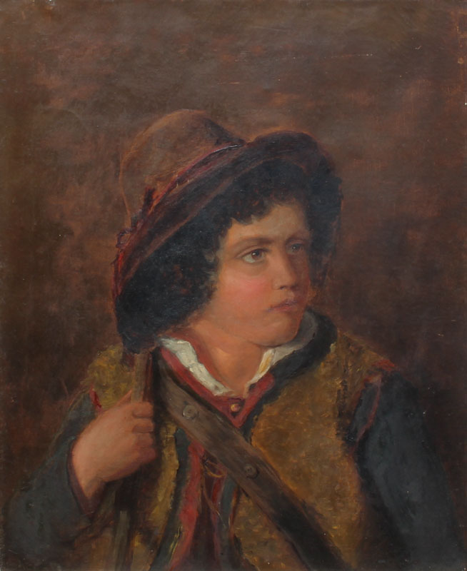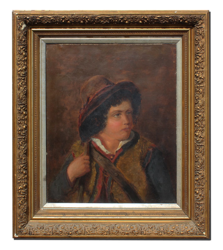 19TH C. PORTRAIT OF A YOUNG COUNTRY BOY: Oil/Canvas, 24'' x 20'', no visible signature, period gilded gesso frame with missing gesso, 34'' x 29 1/2''.