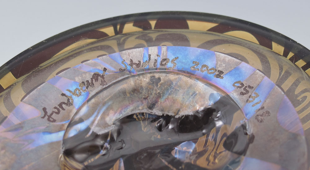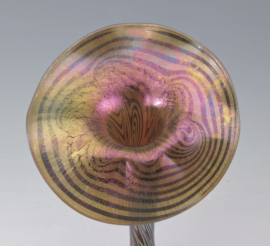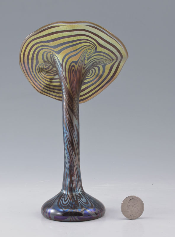 LUNDBERG STUDIOS JACK IN THE PULPIT VASE: Polychromatic value comes from surface changing color depending on the angle viewed. 7 3/4'' h. x 4 5/8''.